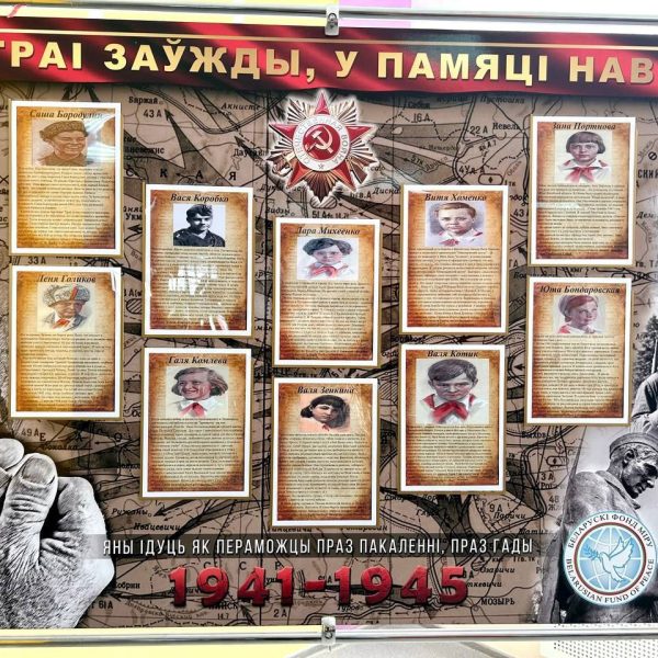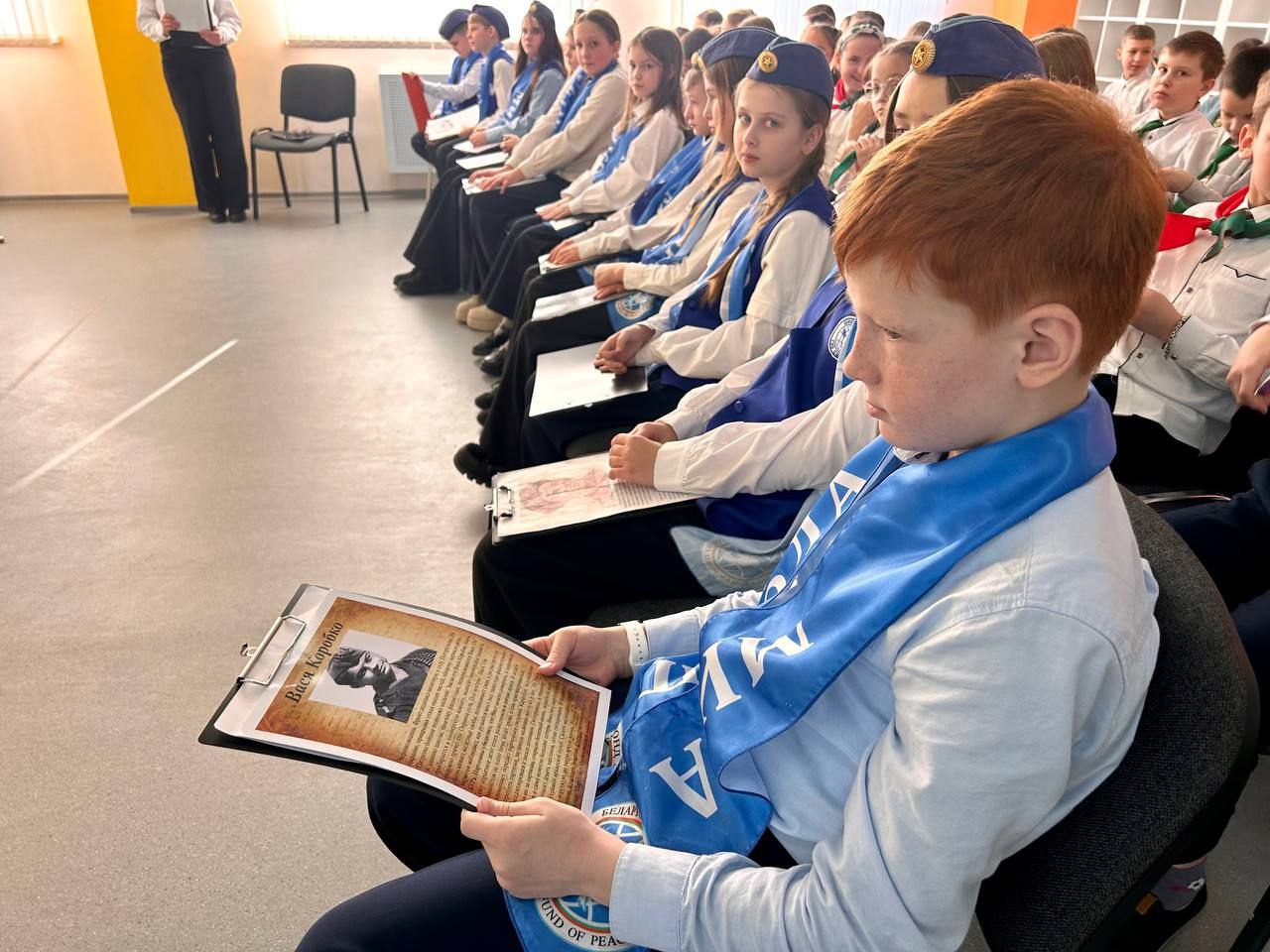 В преддверии Дня юного героя антифашиста в пионерской дружины им.Зои Космодемьянской состоялся урок мужества «В строю всегда, в памяти навечно». С участие почётных гостей : Ващенко М.В., старшего научного сотрудника «Государственного архива Гомельской области». В рамках проекта «ШКОЛА МИРА» миротворцы приняли участие в военно-патриотической акции, организатором которой выступает общественное объединение «Белорусский фонд мира».