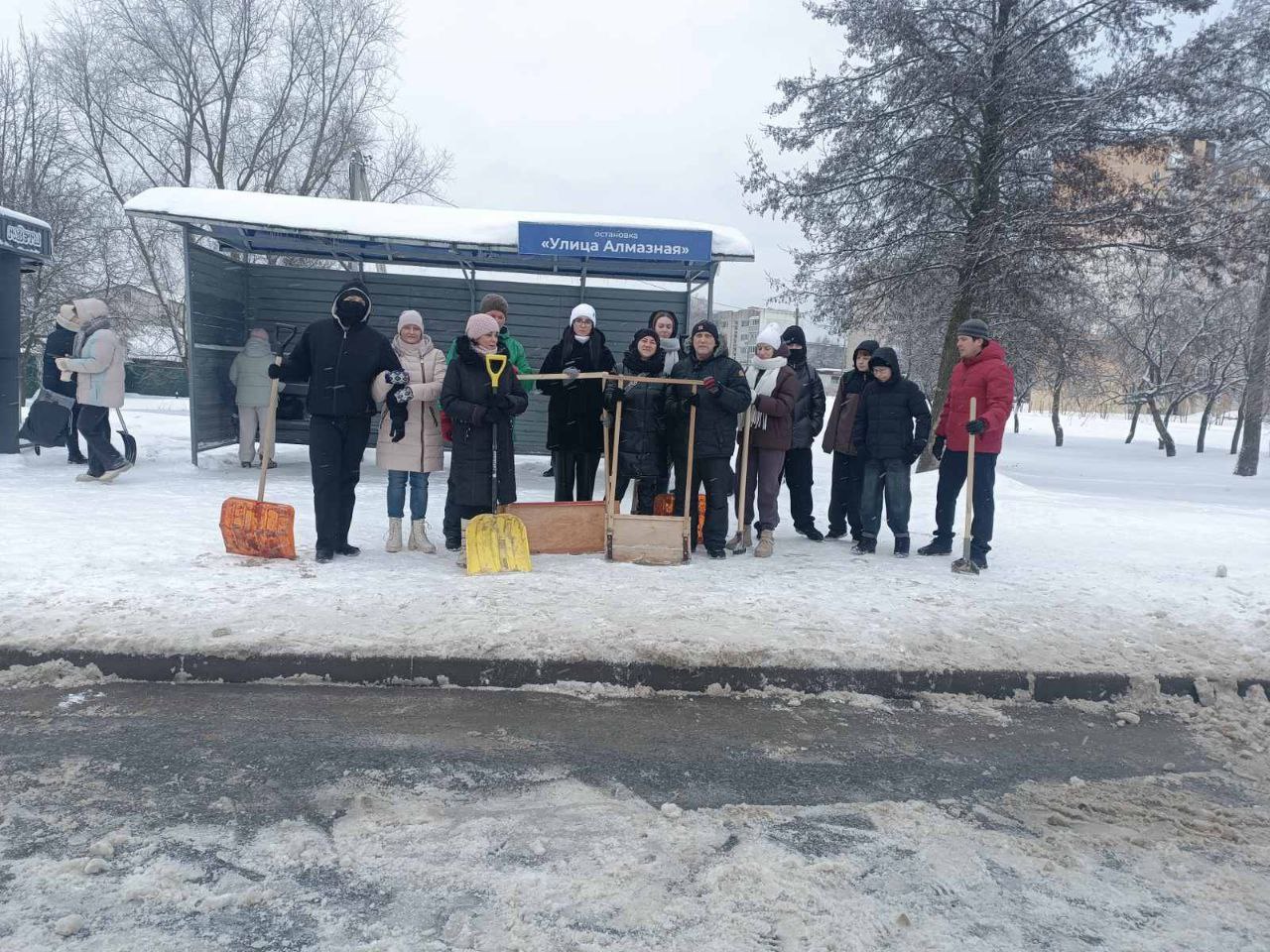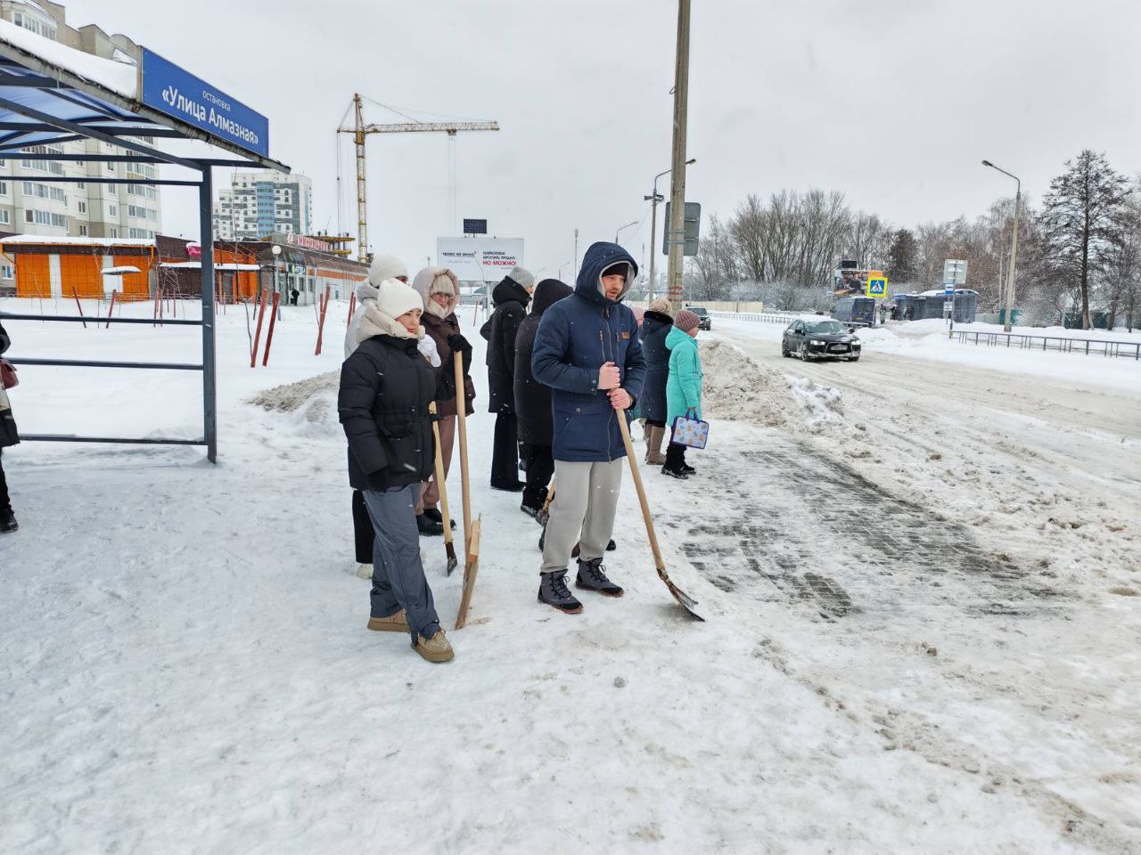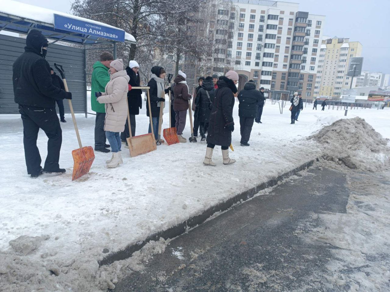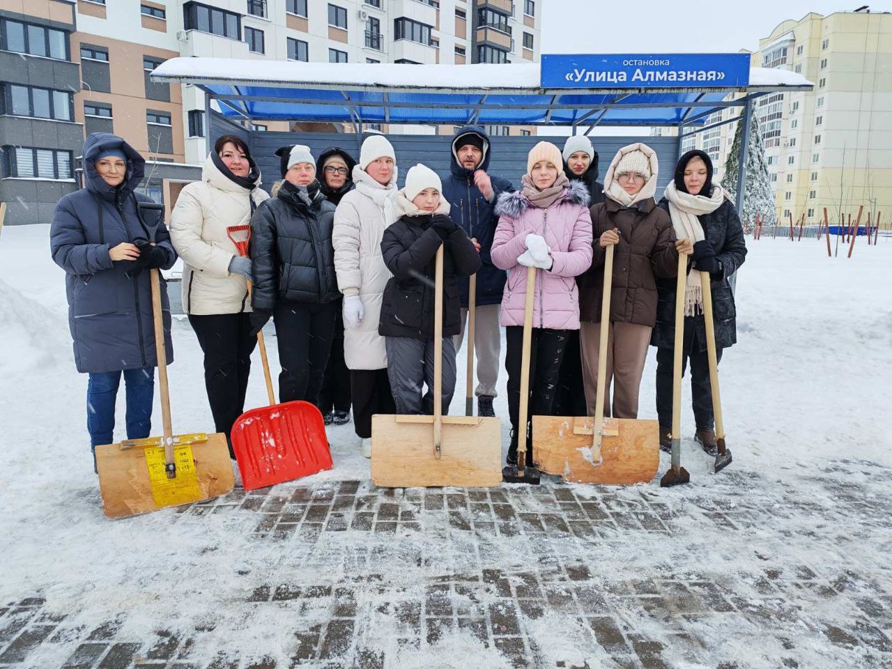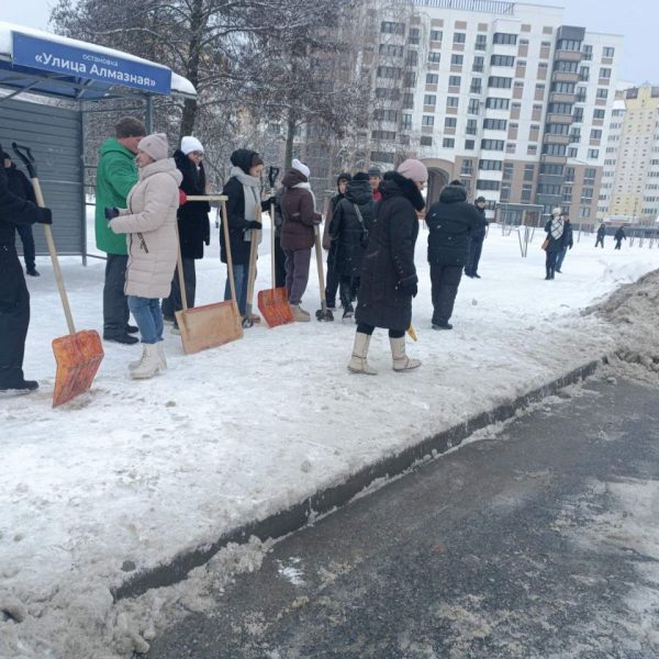 ГОРОДСКОЙ СУББОТНИК Запись опубликована:12.01.2026 Волонтёры ГУО «Средняя школа 75 г. Гомеля» приняли участие в расчистке остановочных пунктов «ул. Алмазная» от снега. Вместе — МЫ сила!