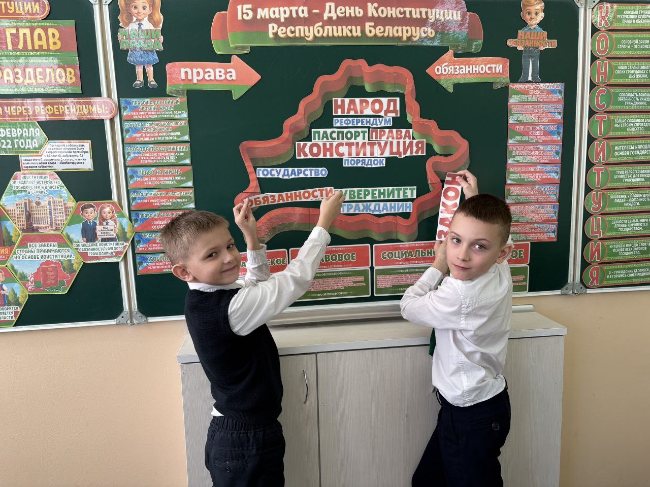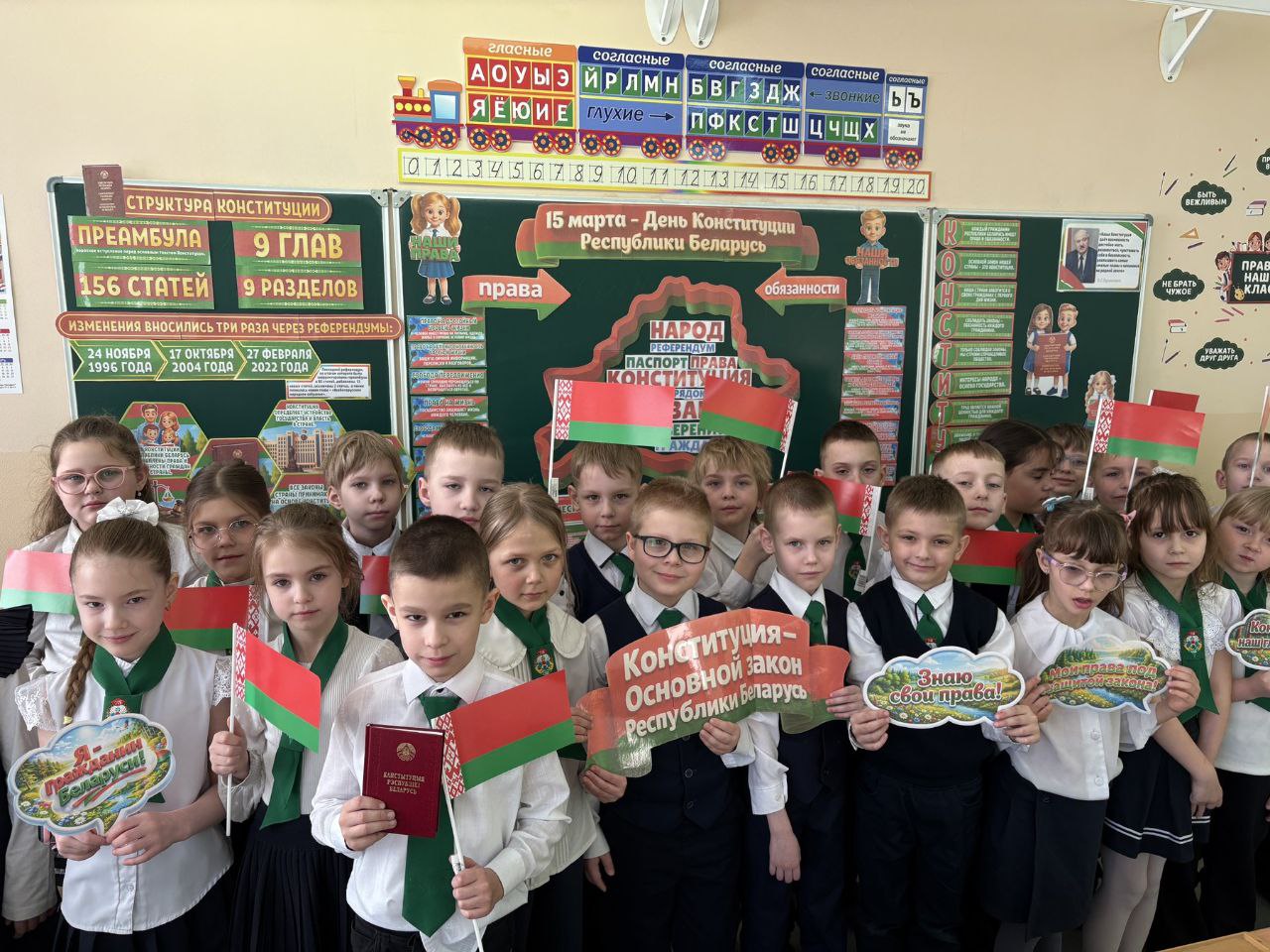 13 марта 2026 года в ГУО «Средняя школа №75 г.Гомеля» прошёл единый урок, посвященный Дню Конституции Республики Беларусь. Педагоги обсудили с учащимися важные вопросы — что значит быть гражданином Республики Беларусь, права и обязанности граждан и почему они взаимосвязаны. Проведение единого урока призвано сформировать у учащихся правовую культуру, активную гражданскую позицию и понимание значения Конституции Республики Беларусь.