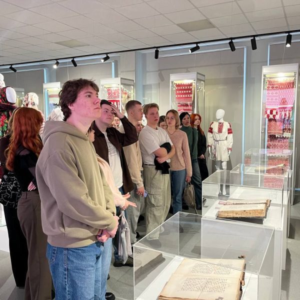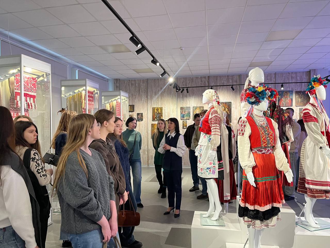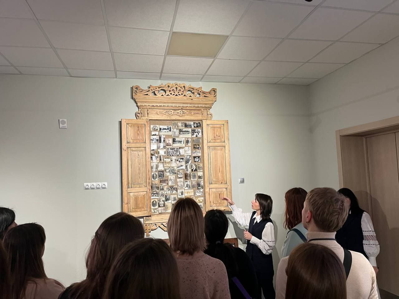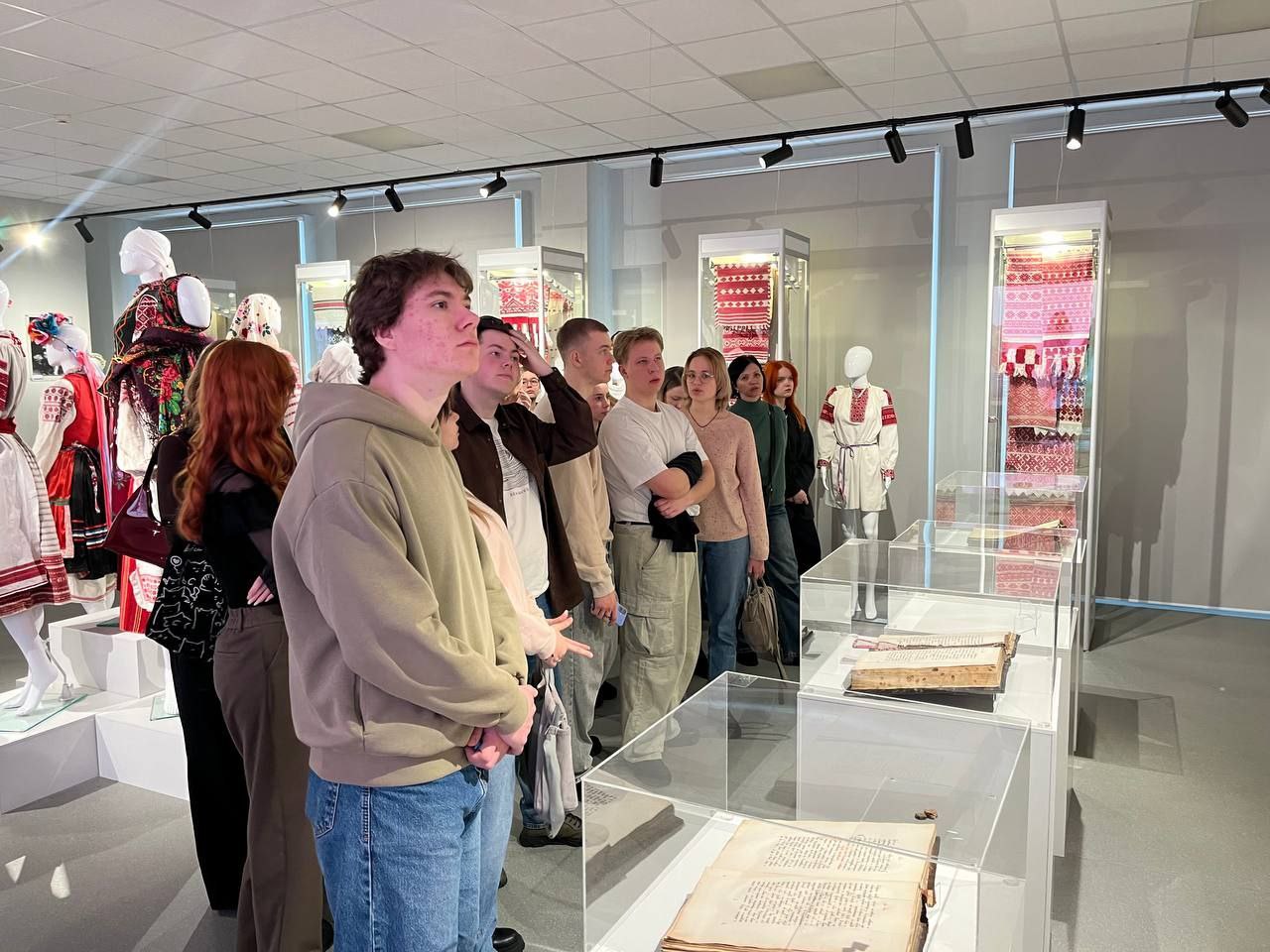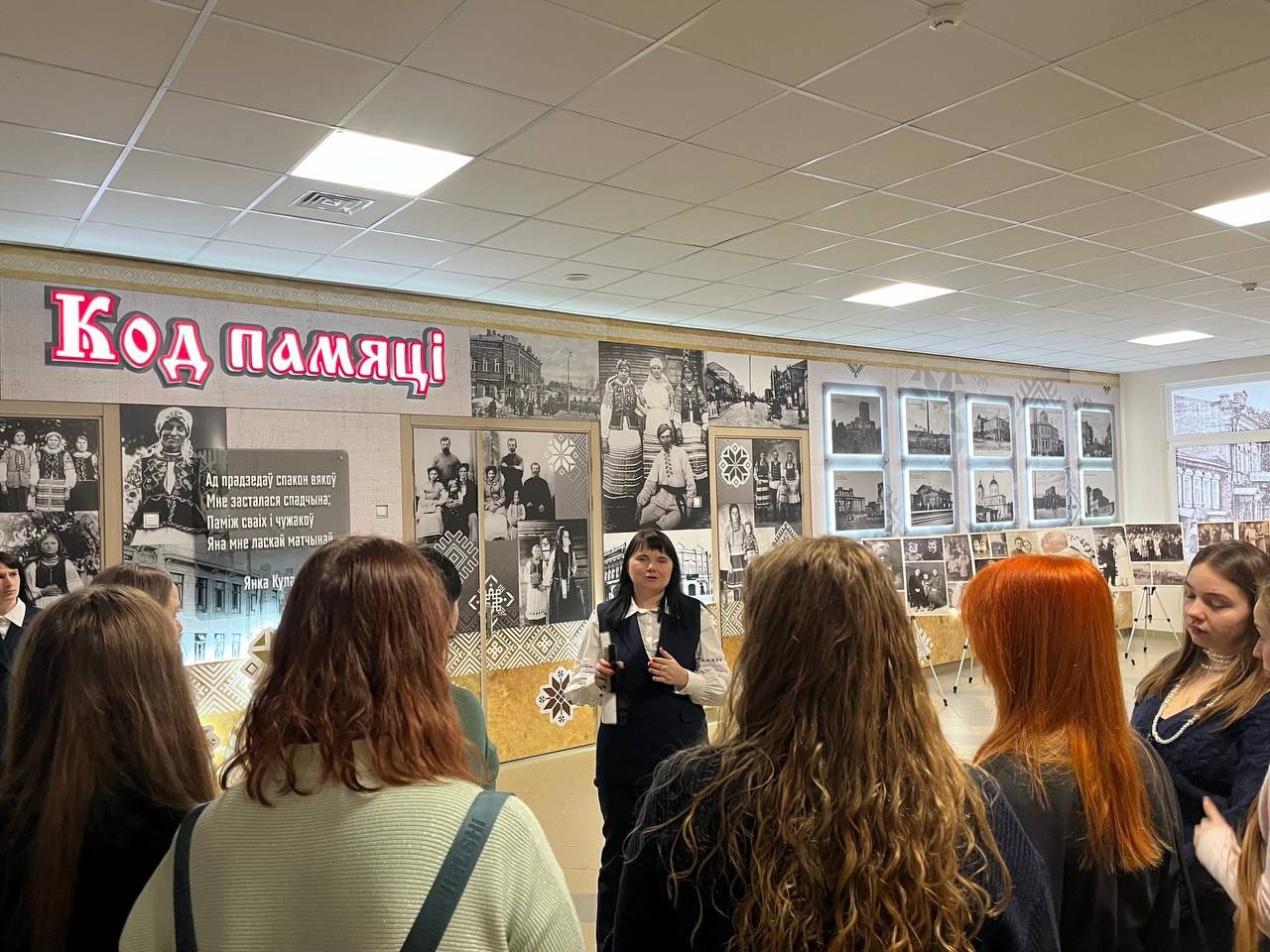 26.02.2026 студенты Белорусского государственного университета транспорта посетили этнографическую музейную экспозицию «Код памяти» ГУО «Средняя школа 75 г.Гомеля». Студентов знакомили с историей и бытом нашего народа, подлинными фотографиями, датируемые периодом до революции, аутентичными рушниками, иконами XVIII–XIX веков, старинными народными белорусскими костюмами, предметами крестьянского быта – сундуки, посуда из глины, ткани, соломенные корзины, книги и другие редкие экспонаты городской культуры и быта. Посетители поделились яркими впечатлениями об экскурсии и представленных экспонатах.