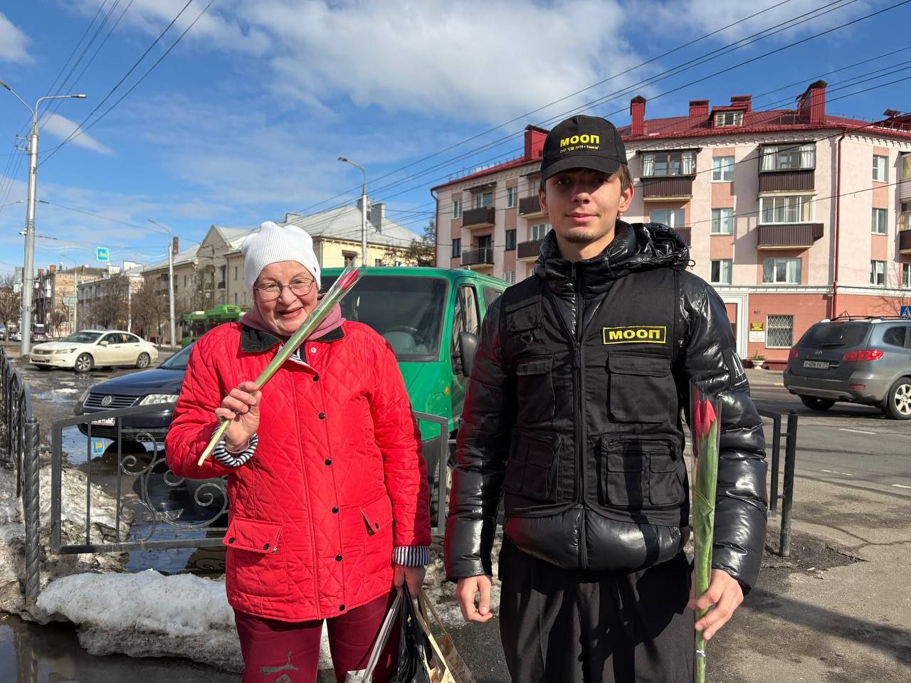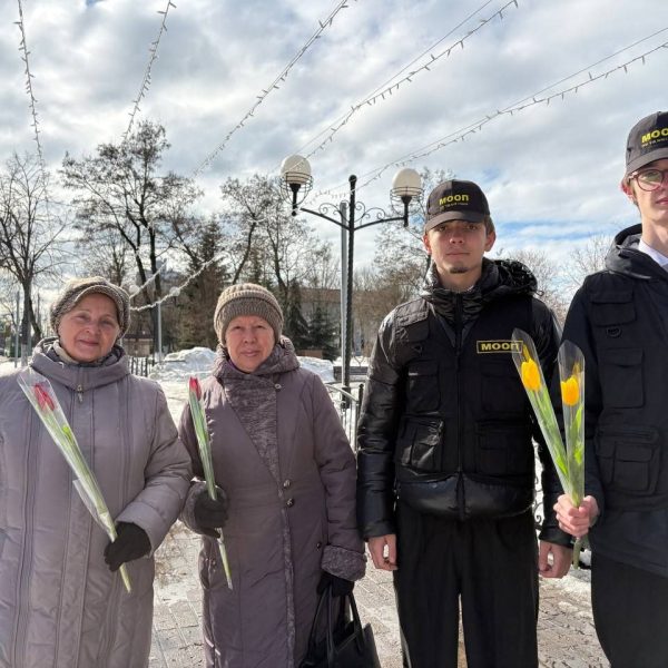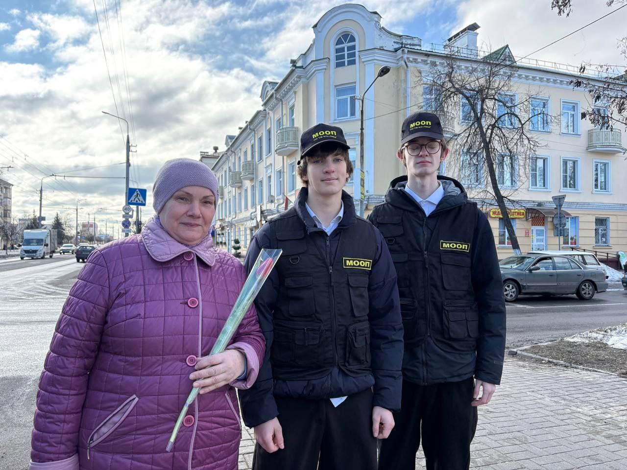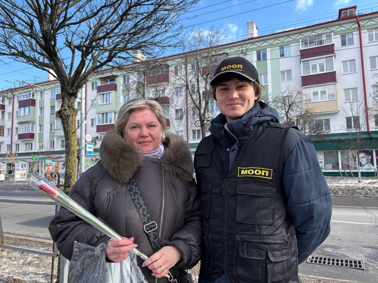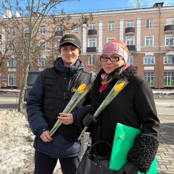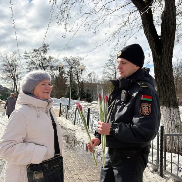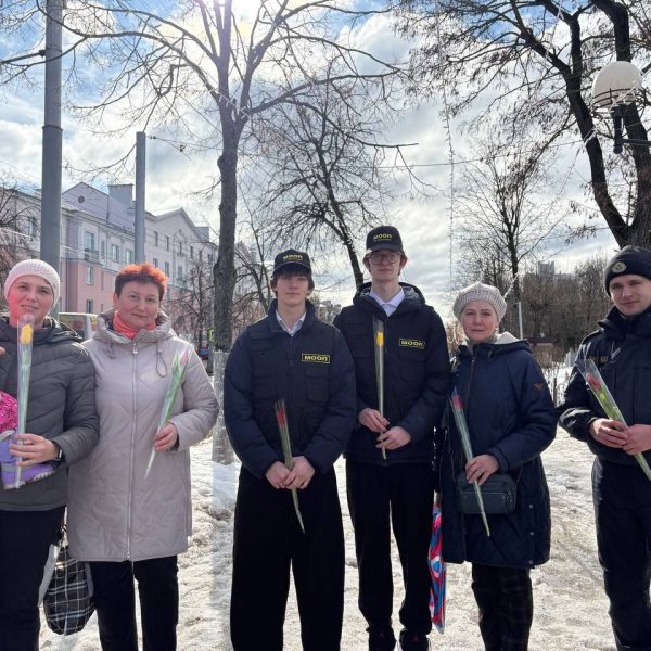 06.03.2026 бойцы отряда МООП ПО «БРСМ» ГУО «Средняя школа №75 г.Гомеля» в преддверии Международного женского дня приняли участие цветочном патруле с Будником В.И., УИ ИДН ОВД администрации Новобелицкого района г.Гомеля. Желали всем женщинам радости, любви и хорошего настроения — ведь именно они делают наш мир ярче и теплее. С праздником, дорогие женщины!