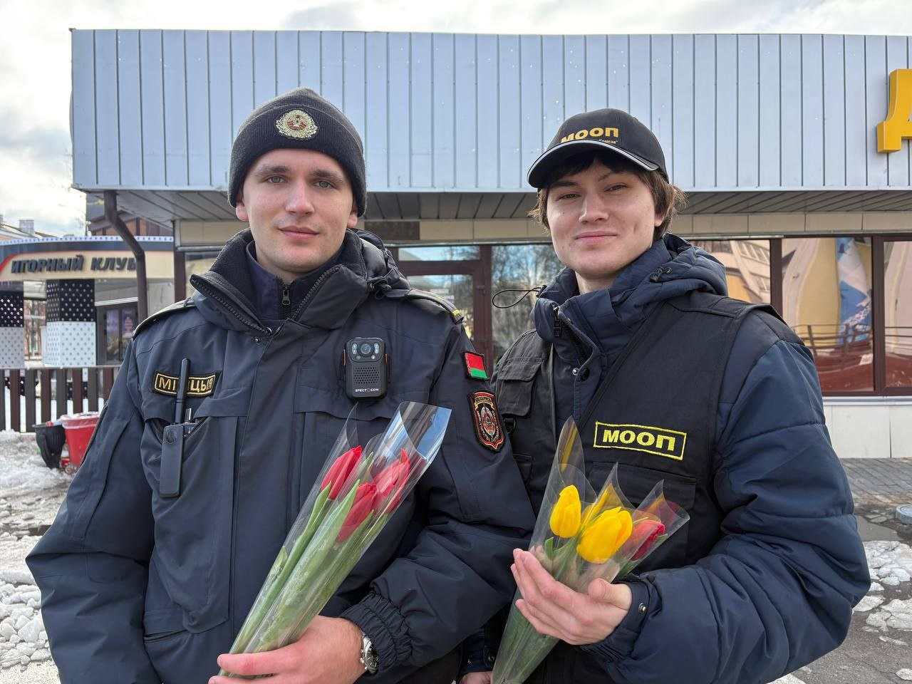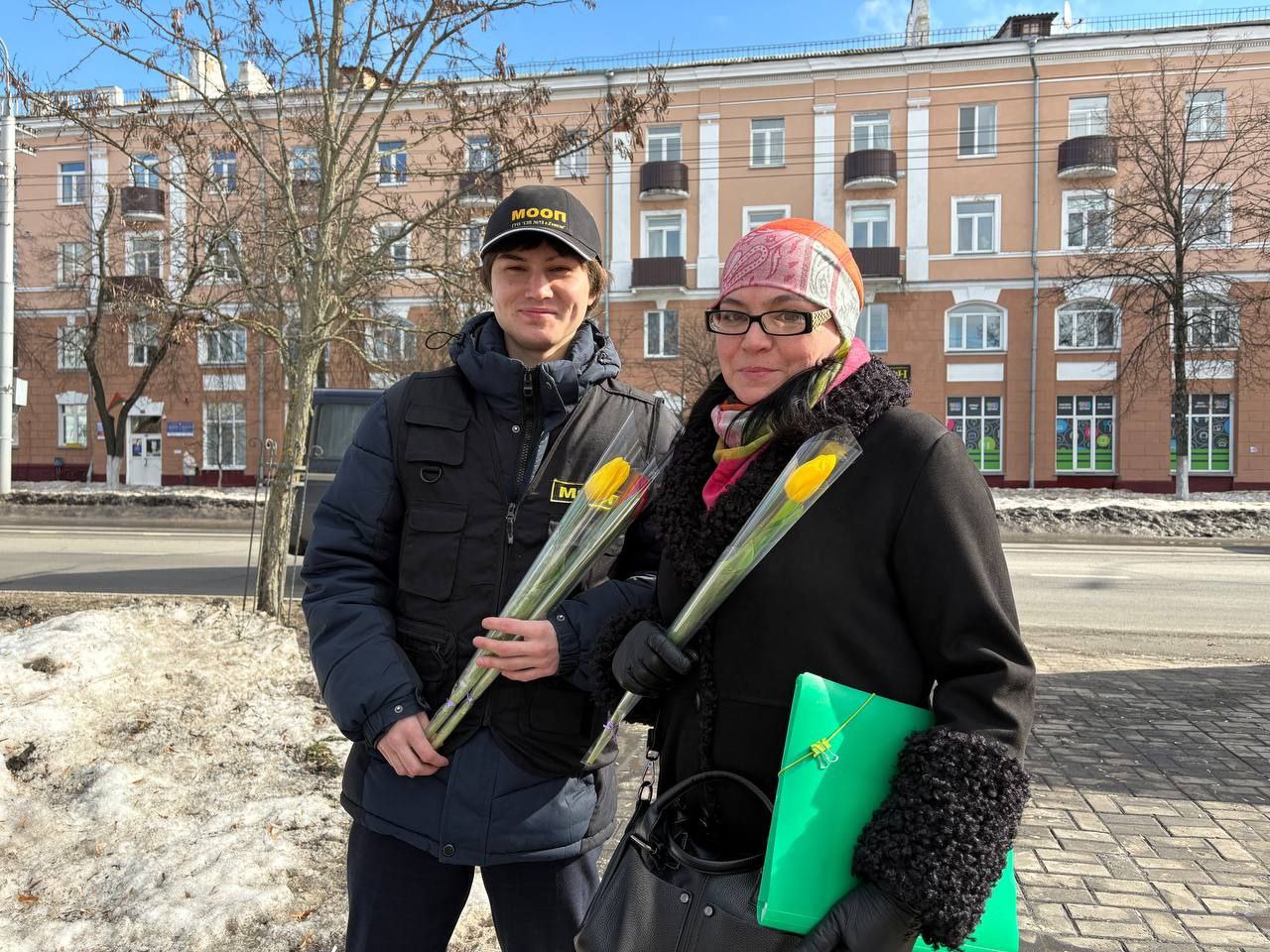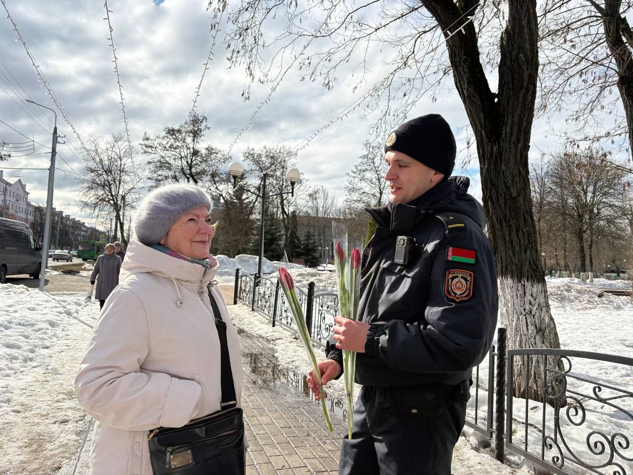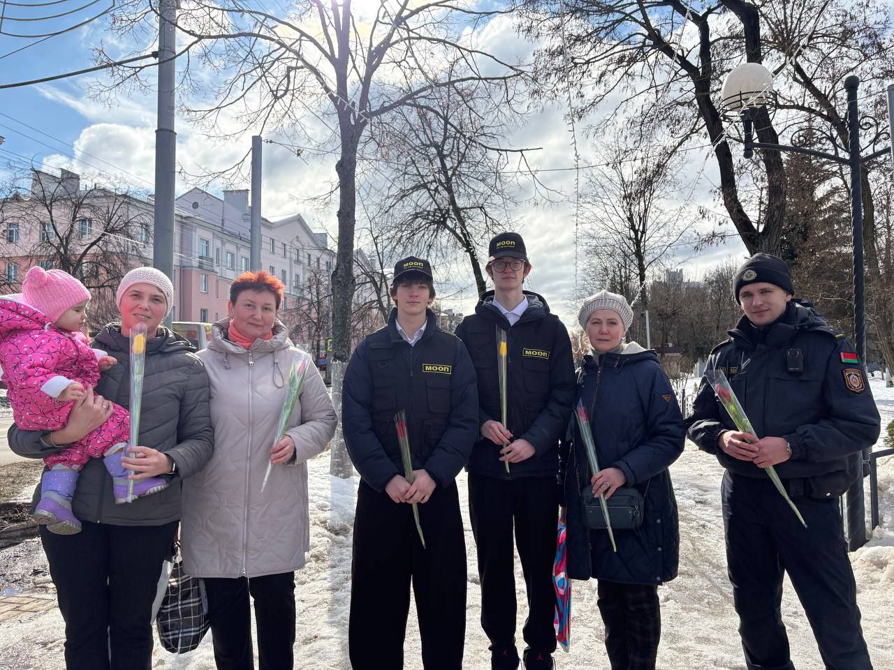 06.03.2026 бойцы отряда МООП ПО «БРСМ» ГУО «Средняя школа №75 г.Гомеля» в преддверии Международного женского дня приняли участие цветочном патруле с Будником В.И., УИ ИДН ОВД администрации Новобелицкого района г.Гомеля. Желали всем женщинам радости, любви и хорошего настроения — ведь именно они делают наш мир ярче и теплее. С праздником, дорогие женщины!