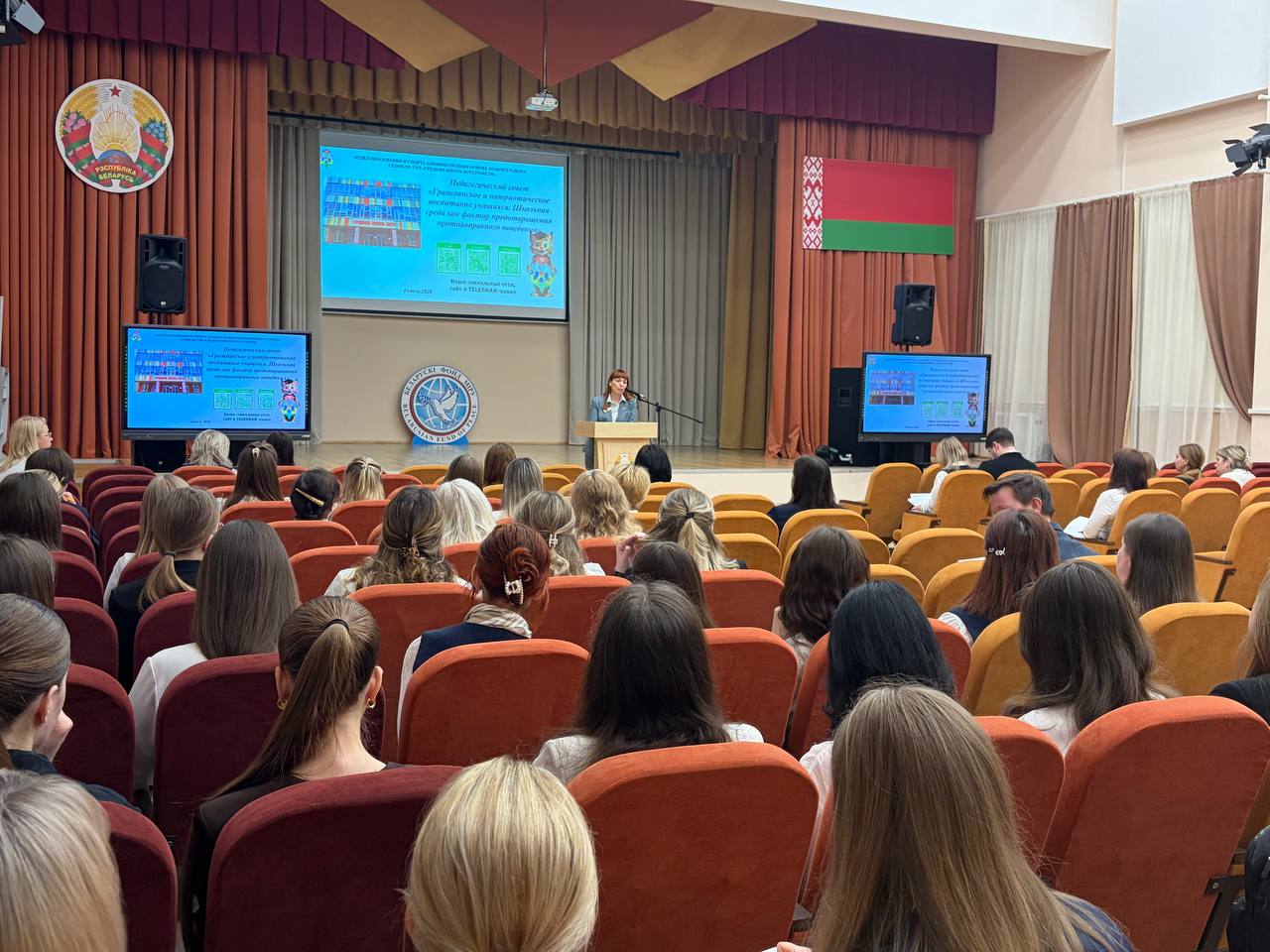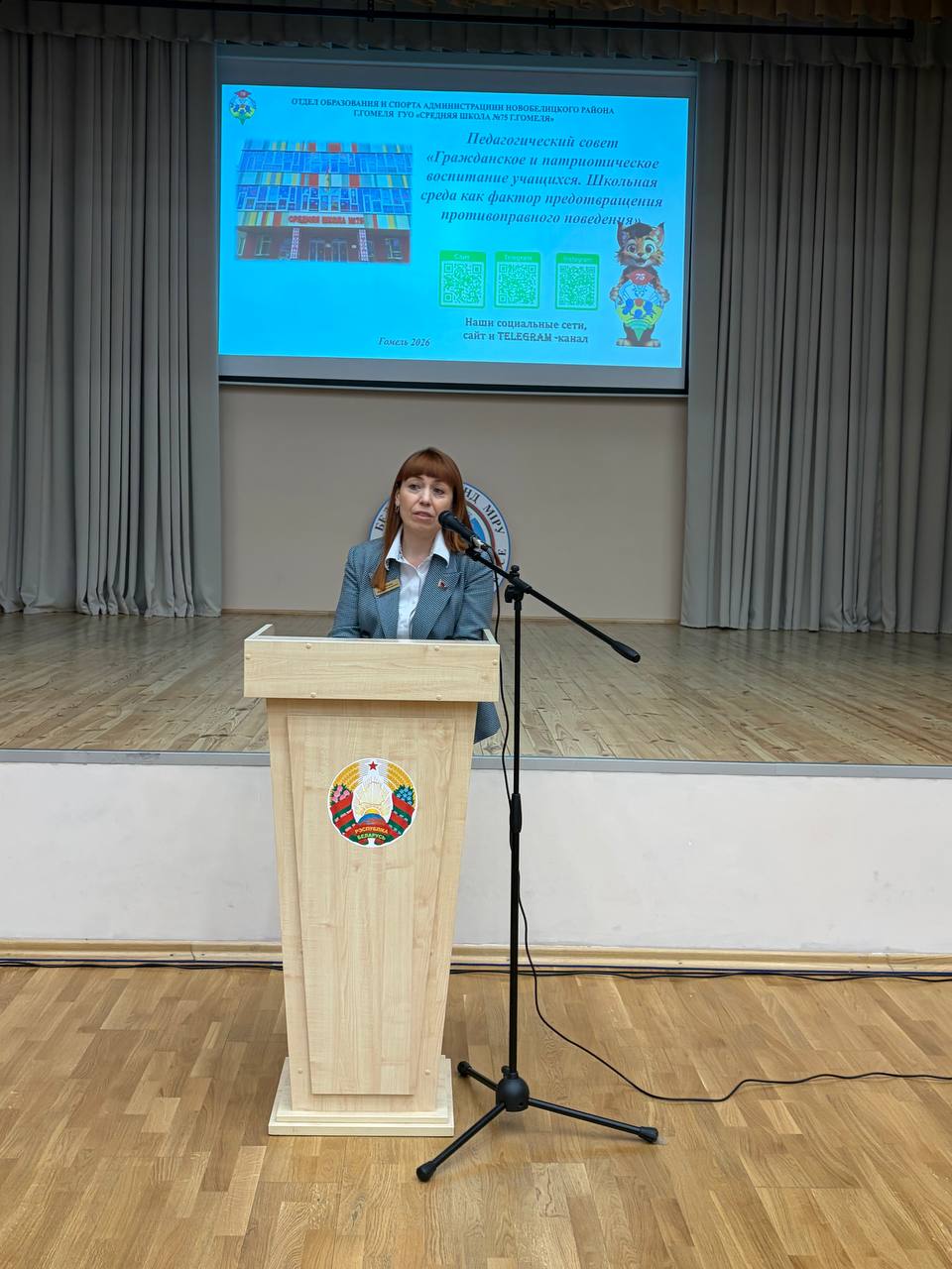 23.03.2026 В ГУО «Средняя школа 75 г. Гомеля» состоялся педагогический совет на тему «Гражданское и патриотическое воспитание учащихся. Школьная среда как фактор предотвращения противоправного поведения «. На педагогическом совете были рассмотрены следующие вопросы: Работа педагогического коллектива по воспитанию патриотизма и гражданственности. Гражданско-патриотическое воспитание младших школьников Реализация программы. Я. Моя семья. Моя Родина. Роль классного руководителя в формировании гражданских патриотических навыков и проведение профилактических мероприятий. Сплочение классного коллектива. Роль детских организаций в становлении патриота и гражданина Республики. Профилактика преступлений и правонарушений. Экстремизм. Не формальные молодёжные течения. Роль классного руководителя в психолого-педагогическом сопровождении классного сообщества. Профилактика суицидального поведения.