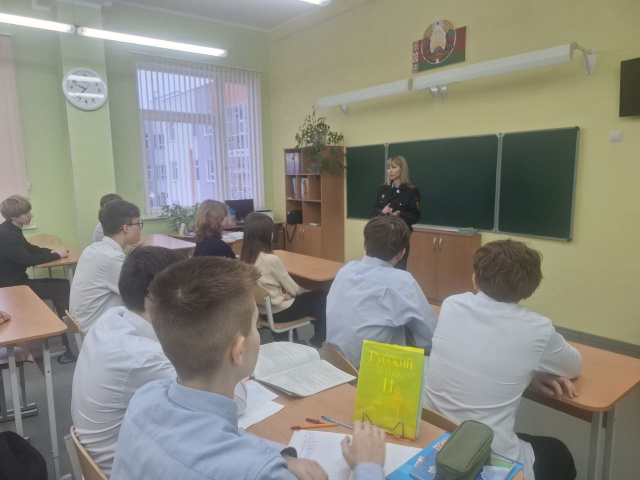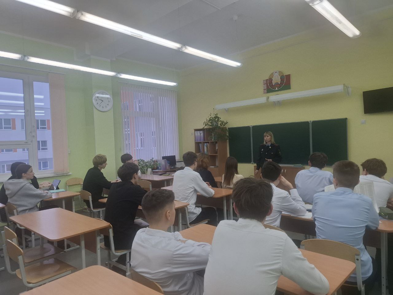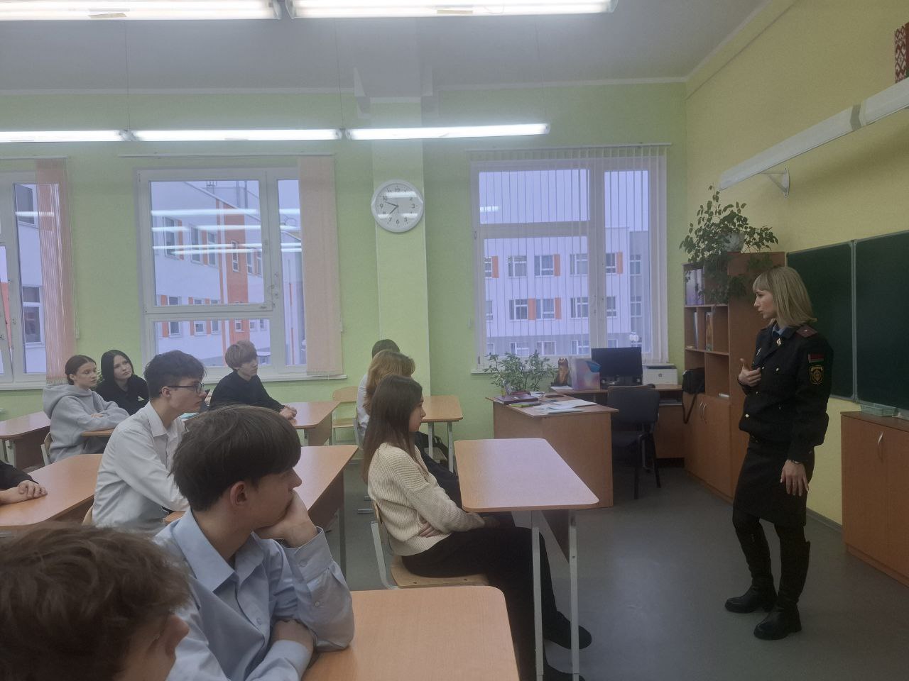 28.01.2026 в ГУО «Средняя школа №75 г.Гомеля» с учащимися прошла беседа «По страницам уголовного кодекса. Формирование зависимостей». С участием Филимоновой Е.В., инспектора ИДН РОВД администрации Новобелицкого района г.Гомеля. Евгения Вячеславовна провела беседу по флэтам и впискам, профилактике преступлений и правонарушений среди несовершеннолетних, по профилактике половой неприкосновенности несовершеннолетних, ответственности за курение в общественных местах, противодействие экстремизма, незаконного оборота наркотических средств, потребления ПАВ, а также кибербезопасности.
