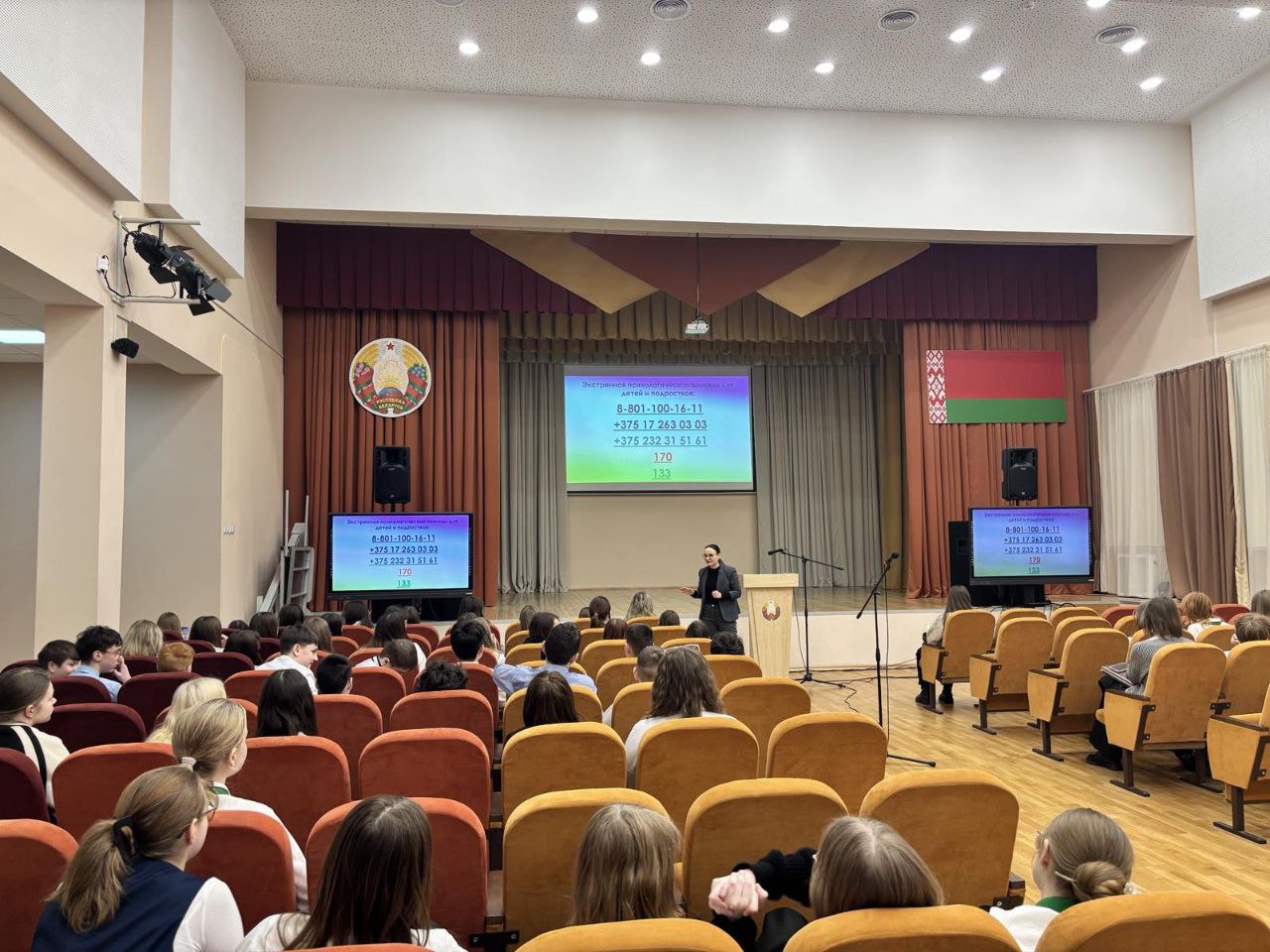 30.01.2026 года в ГУО «Средняя школа №75 г.Гомеля» для учащихся 7 классов проведен «Диалог без галстука» по теме: «Профилактика преступлений и правонарушений среди несовершеннолетних. Формирование жизненных ценностей у подростков» при участии представителей межведомственных структур: Долгодилина А.В., УИ ИДН НОВД г.Гомеля; Ильенко-Зубаревой А.В., специалиста Центра, дружественного подросткам «Подросток»; Шахленковой К.Д., инспектора группы агитации и пропаганды МО ГАИ УВД Гомельского облисполкома; Головач А.М., врача-педиатра ГУЗ «ГЦГДКП», филиал №2. Ващенко А.С., педагог-психолог ГУО «Средняя школа №75 г.Гомеля».  В процессе диалога учащимся напомнили о возможности обращения к педагогам-психологам и педагогам социальным с целью разрешения конфликтных ситуаций, о том, что можно поделиться своими тревогами, страхами, сомнениями, рассказать о том, что волнует детей и их близких, о необходимости участия и помощи, поддержки в жизни учащихся посредством обращений через «ящик доверия». Учащимся рассказали о способах и приемах формирования устойчивых жизненных ценностей и психологического благополучия. Представители рассказали о возможности обращения в специализированные Центры, такие как «Подросток», учащимся напомнили о «Телефонах доверия» и «Горячих линиях», о возможности обращения  круглосуточно, анонимно и бесплатно. Так же, в процессе диалога учащимся напомнили об ответственности за правонарушения и преступления, о вовлечении несовершеннолетних в экстремистскую деятельность, профилактике различного рода зависимостей, о половой неприкосновенности несовершеннолетних и профилактике употребления психоактивных веществ и их аналогов. В процессе диалога учащиеся задавали вопросы, специалистами были даны ответы и рекомендации.