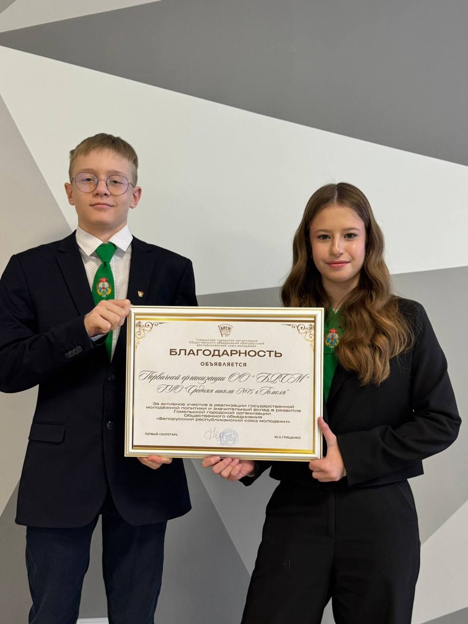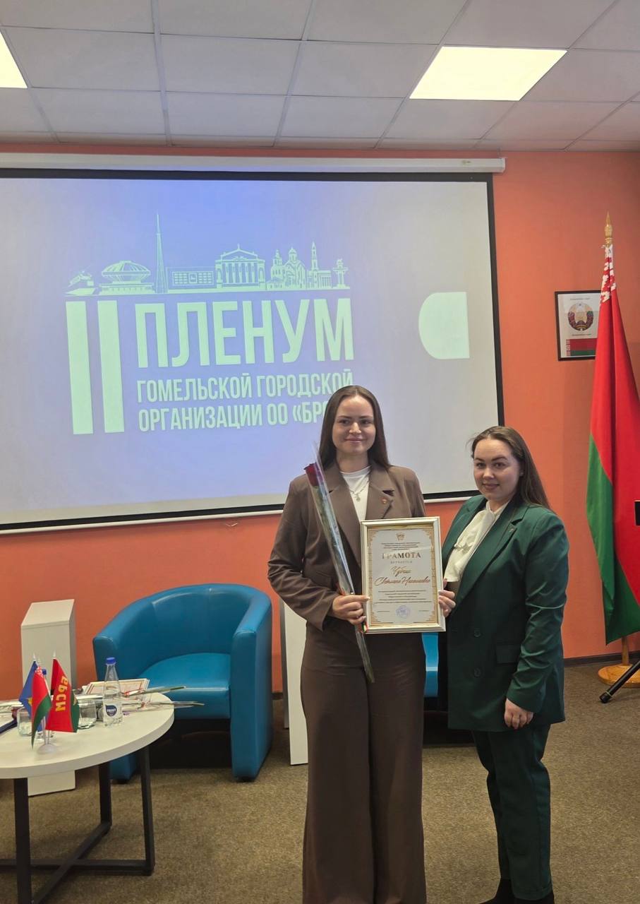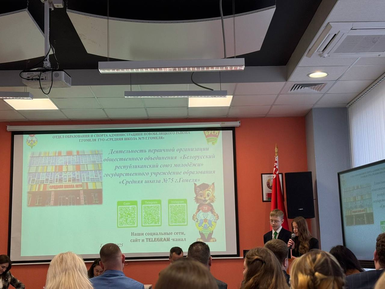 25 марта 2026 года активисты ГУО «Средняя школа №75 г.Гомеля» на базе технопарка «Коралл» приняли участие в расширенном заседание II пленума городской организации БРСМ. Форум стал площадкой для анализа деятельности объединения за минувший год и определения стратегии развития. По итогам 2025 года За активное участие в работе союза молодёжи вручено: Благодарность Первичной организации ОО «БРСМ» ГУО «Средняя школа 75 г. Гомеля» за активное участие в реализации государственной молодёжной политики. Чубчик С.Н., грамота за исключительный личный вклад и активное участие в общественно-значимых мероприятиях. Чикунова А.С., была отмечена благодарностью за личный вклад в развитие и реализацию проектов и программ по итогам работы 2025 года. Активисты представили деятельность первичной организации ОО «БРСМ» ГУО «Средняя школа №75 г. Гомеля» и опыт работы за 2025 год как лучшая первичная организация ОО «БРСМ» Новобелицкого района г.Гомеля.