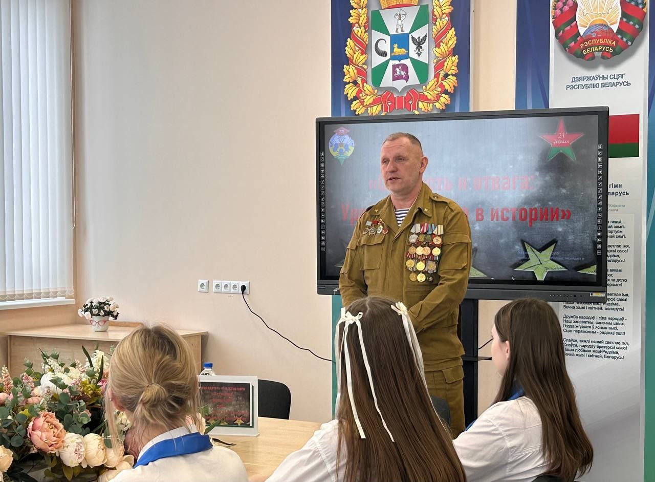 19.02.2026 в ГУО «Средняя школа №75 г.Гомеля»-ШКОЛЕ МИРА состоялся УРОК МУЖЕСТВА «СМЕЛОСТЬ И ОТВАГА», посвящённый Дню защитника Отечества. Приглашённый гость: Малевич Сергей Валентинович, председатель районного общественного объединения «Белорусский союз ветеранов войны в Афганистане». Сергей Валентинович поделился своими воспоминаниями о службе в Афганистане. Он рассказал о суровых буднях солдат, о боевом братстве, о потерях и о том, как важно ценить мирное небо над головой. В свою очередь ребята смогли задать все интересующие их вопросы. Такие мероприятия воспитывают у подрастающего поколения чувство гордости и патриотизма. Сегодня как никогда важно чтить прошлое, беречь настоящее и созидать во имя будущего нашей страны — быть ее гражданином и настоящим патриотом!