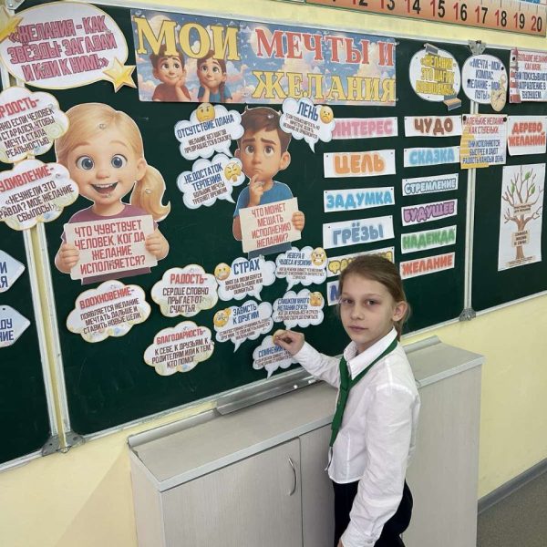 22.01.2025 г. в ГУО «Средняя школа №75 г.Гомеля» прошёл классный час «Мои мечты и желания». Главная цель: Познакомить первоклассников с базовыми жизненными ценностями в доступной форме, помочь им осознать, что важно для них самих и для окружающих. В рамках мероприятия разбирались способы и приемы формирования жизнеутверждающих ценностей. Главный результат— не усвоенные определения, а положительные эмоции, чувство общности и первые «маячки» в понимании простых человеческих правил. Это начало большого и важного разговора, который будет продолжаться все школьные годы.