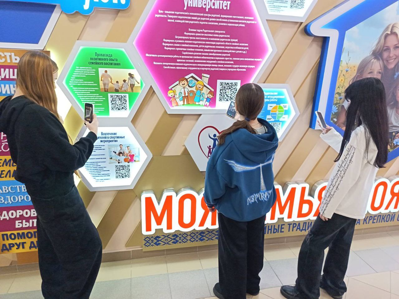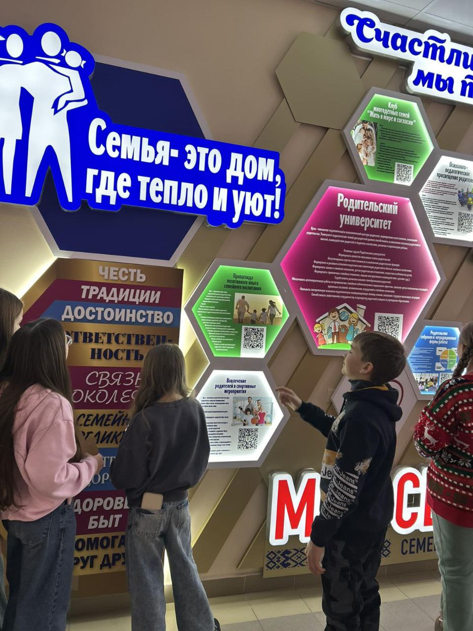 В рамках шестого школьного дня 24.01.2026 для учащихся ГУО «Средняя школа №75 г.Гомеля» прошёл экскурс по школьным экспозициям «Механизм успеха» — «Изучаем! Созидаем! Воплощаем!», который включал: ЭКСПОЗИЦИЯ ОПЫТА РАБОТЫ С СЕМЬЯМИ «Моя семья. Моя страна». Цель: Укрепить институт семьи, показать преемственность поколений и вклад каждой семьи в историю и развитие региона и страны.