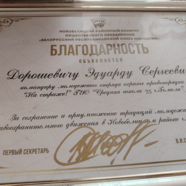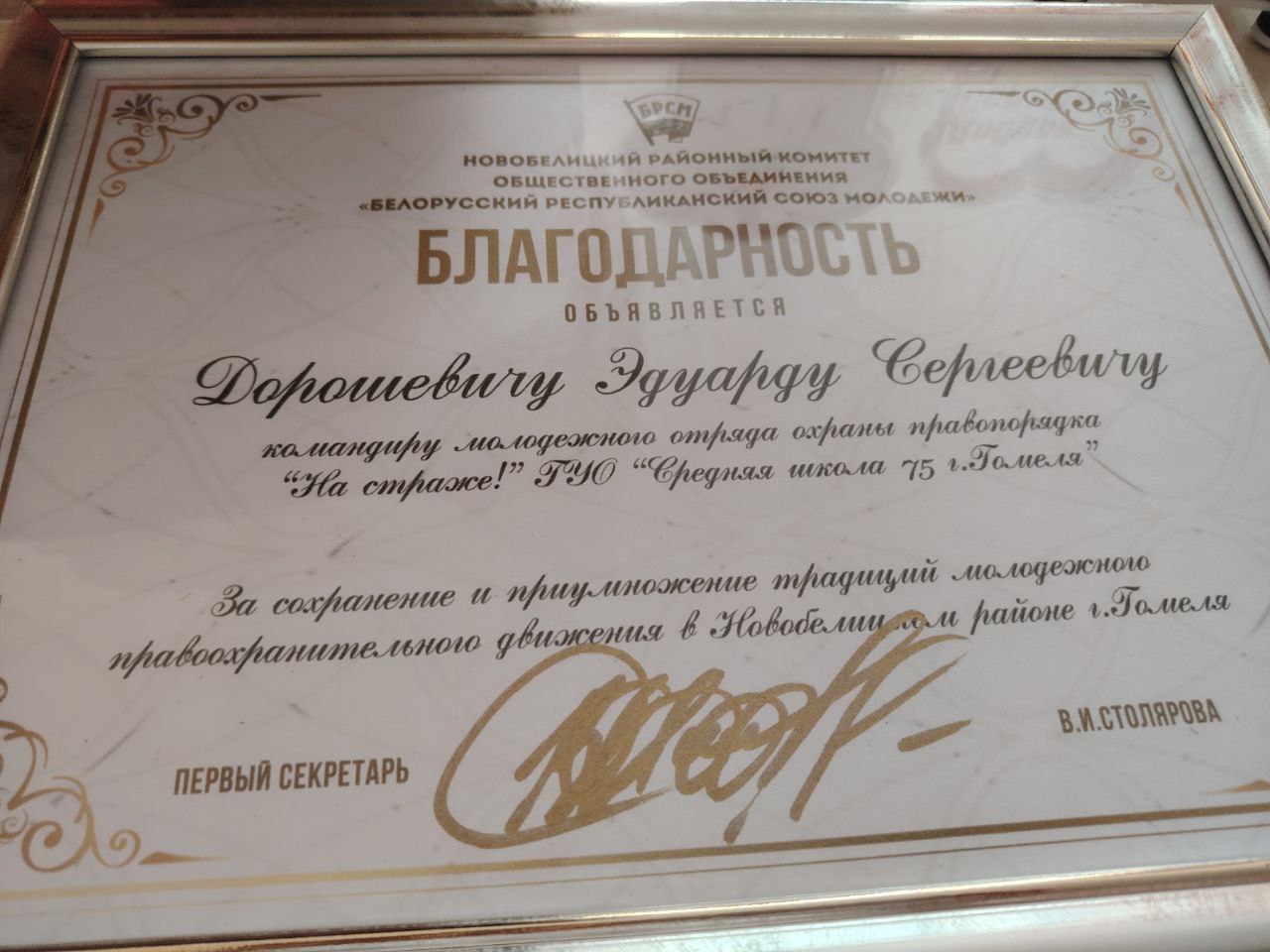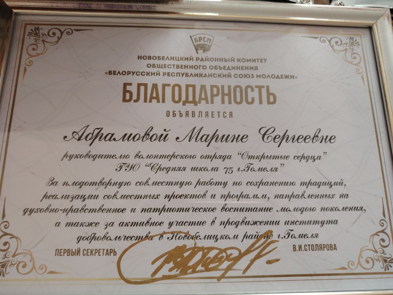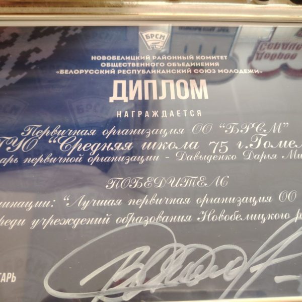 27 февраля 2026 года на базе УЗ «Гомельская университетская клиника-областной госпиталь инвалидов Великой Отечественной войны» прошел II Пленум Новобелицкой районной организации ОО «БРСМ». По итогам 2025 года мы подводим итоги и чествуем лучших! Лучшая первичная организация среди учреждений образования — ГУО «Средняя школа 75 г. Гомеля». Заместитель директора по воспитательной работе Пинчук А.В. была отмечена благодарностью за высокий трудовой энтузиазм, патриотизм и популяризацию студотрядовского движения по итогам 3 трудового семестра 2025. Руководитель по военно-патриотическому воспитанию Дорошевич Э.С. отмечен благодарностью за сохранение и приумножение традиций молодежного провоохранительного движения. Руководитель волонтёрского отряда «Открытые сердца » Абрамова М.С. отмечена благодарностью за активное участие в продвижении института добровольчества. Желаем учащимся дальнейших успехов и побед!!!