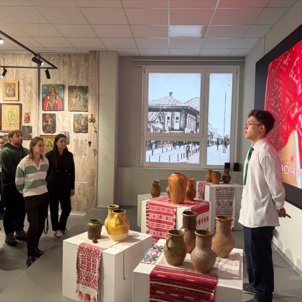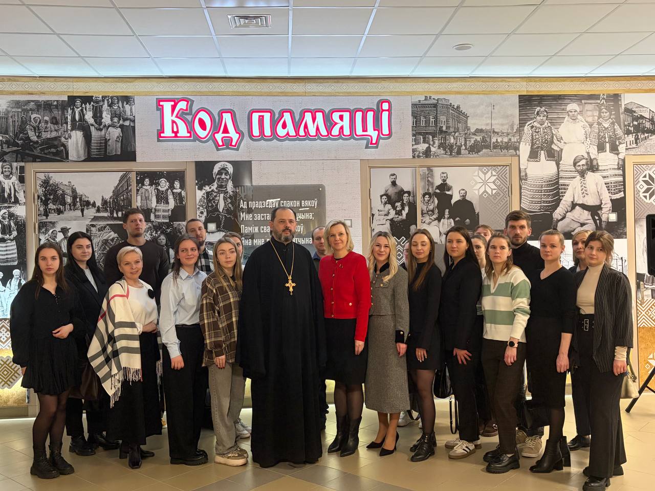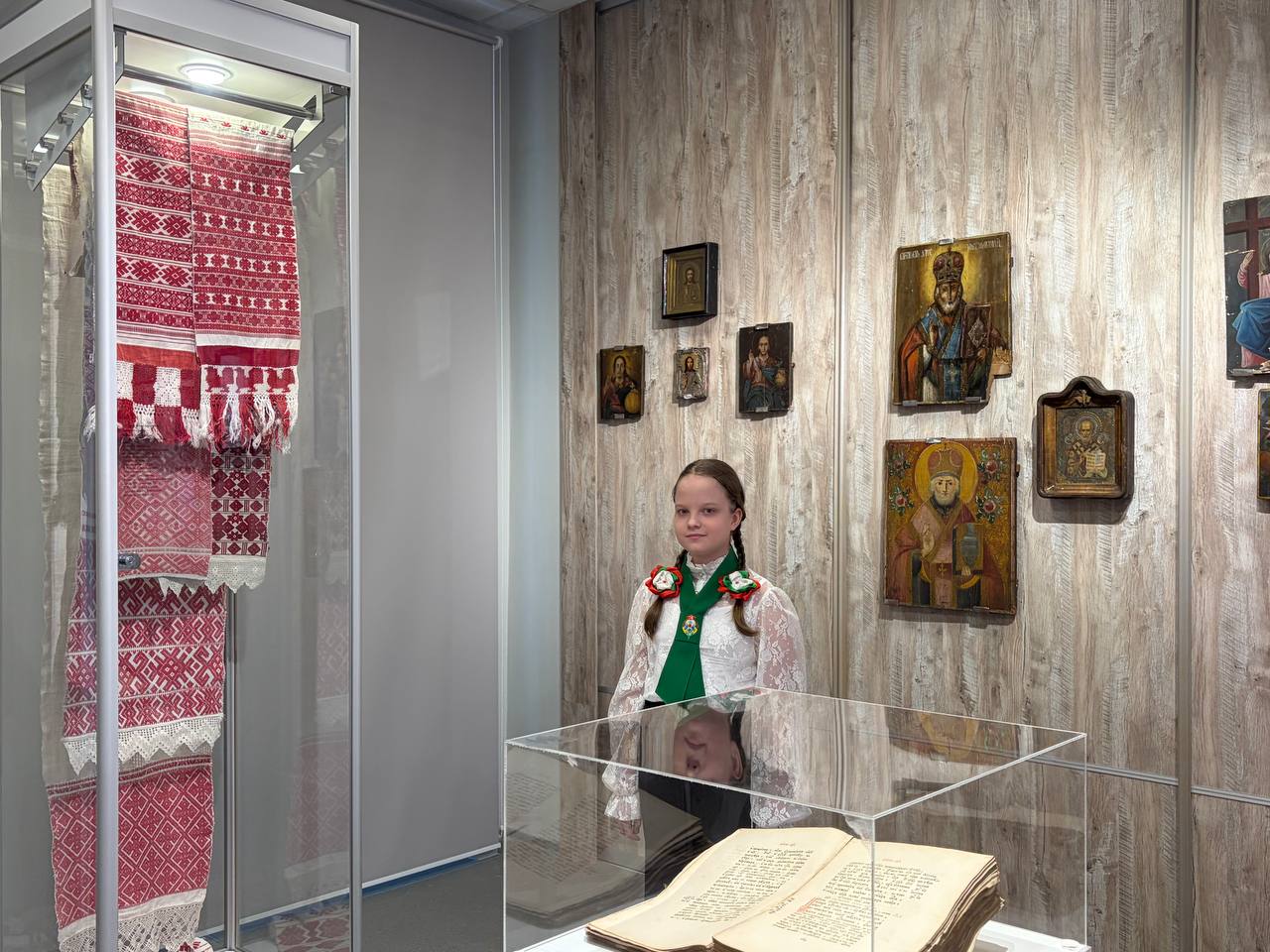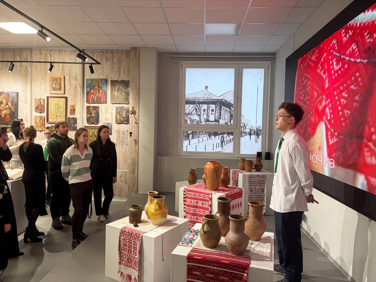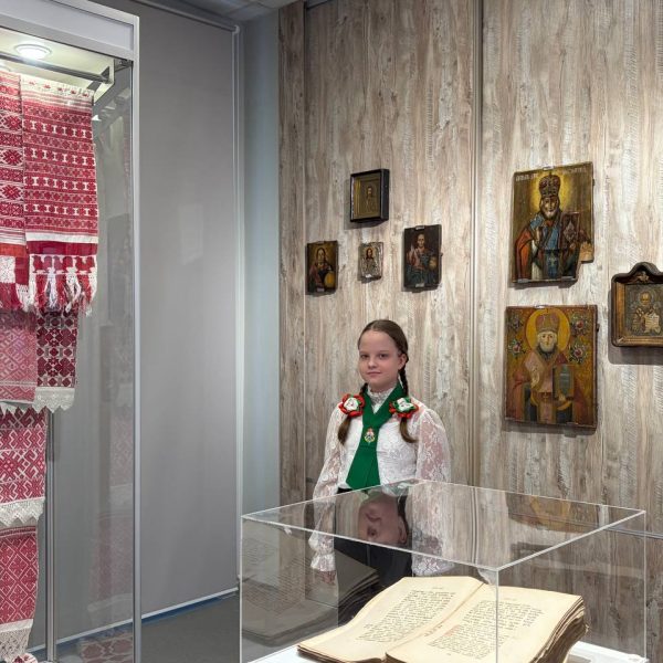 09.04.2026 прошла экскурсия в этнографической музейной экспозиции «Код памяти» ГУО «Средняя школа 75 г.Гомеля» для активистов Молодёжного совета Гомельского районного Совета депутатов. Уже у входа гости могли окунуться в историю белорусской культуры. Посетителей знакомили с историей и бытом нашего народа, подлинными фотографиями, датируемые периодом до революции, аутентичными рушниками, иконами XVIII–XIX веков, старинными народными белорусскими костюмами, предметами крестьянского быта – сундуки, посуда из глины, ткани, соломенные корзины, книги и другие редкие экспонаты городской культуры и быта. Посетители поделились яркими впечатлениями об экскурсии и представленных экспонатах.