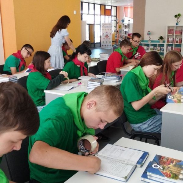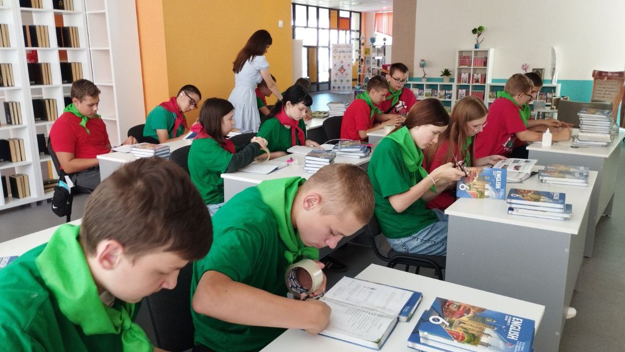 Учащиеся второго отряда продолжили свое участие в ремонте учебных пособий.