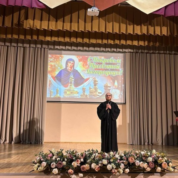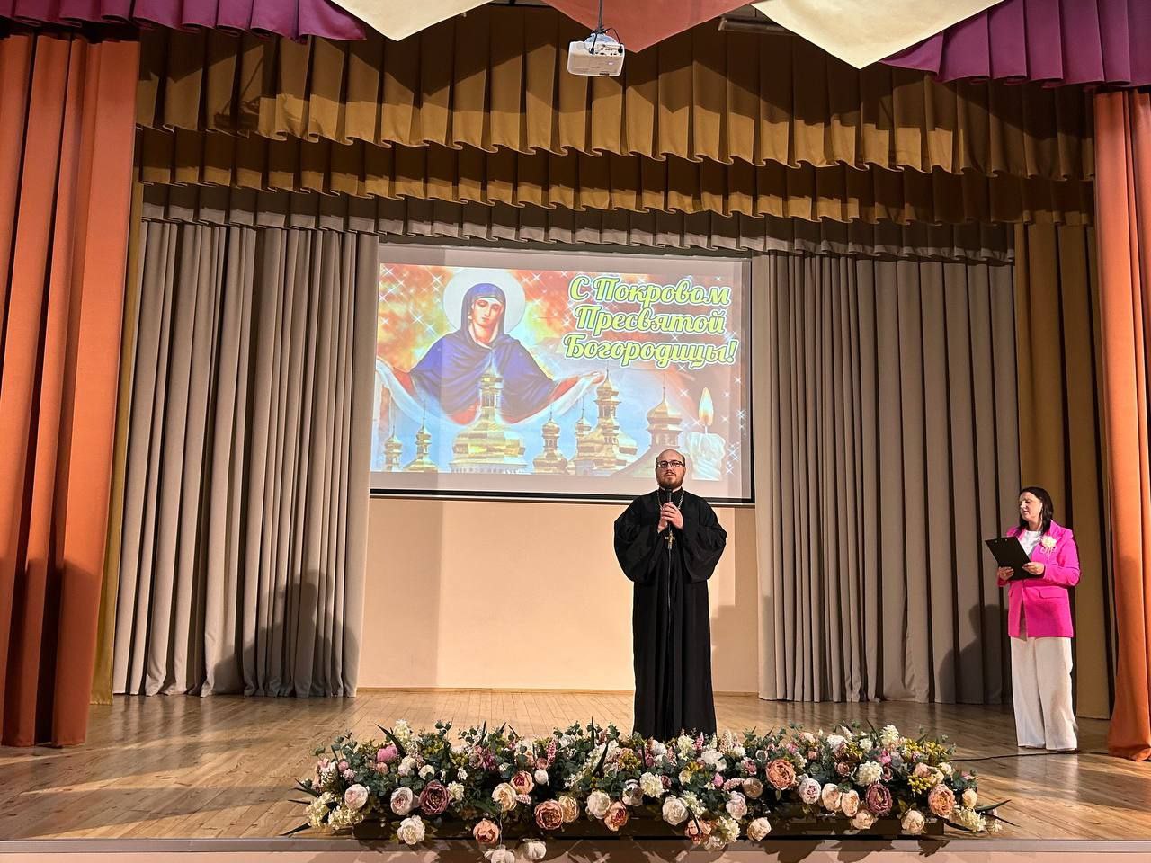 На праздничном концерте присутствовал и выступил с благодатным словом и поздравлением клирик Грузинской иконы Божией Матери отец Николай.