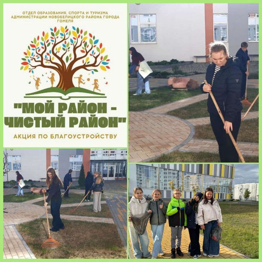 «Мой район — чистый район» Запись опубликована:13.10.2025 Отряд по благоустройству территории «Юные экологи» ГУО «Средняя школа №75 г.Гомеля» присоединился к районной осенней акции по благоустройству