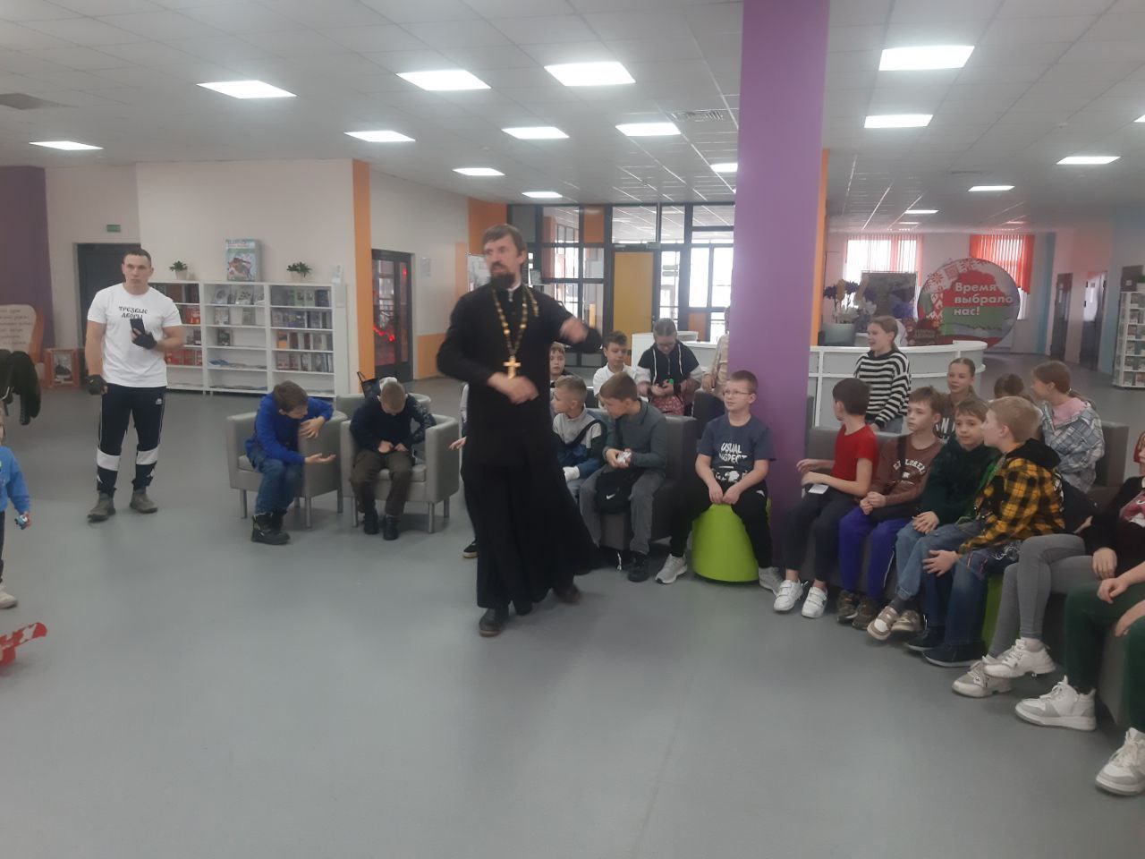 Для учащихся было организовано выступление силачей Александра и Алексея. Координатор по работе с алкоголе- и наркозависимыми людьми отдела социального служения и церковной благотворительности иерей Александр Гришаненко провёл беседу о важности духовно-нравственного и физического воспитания молодого поколения.