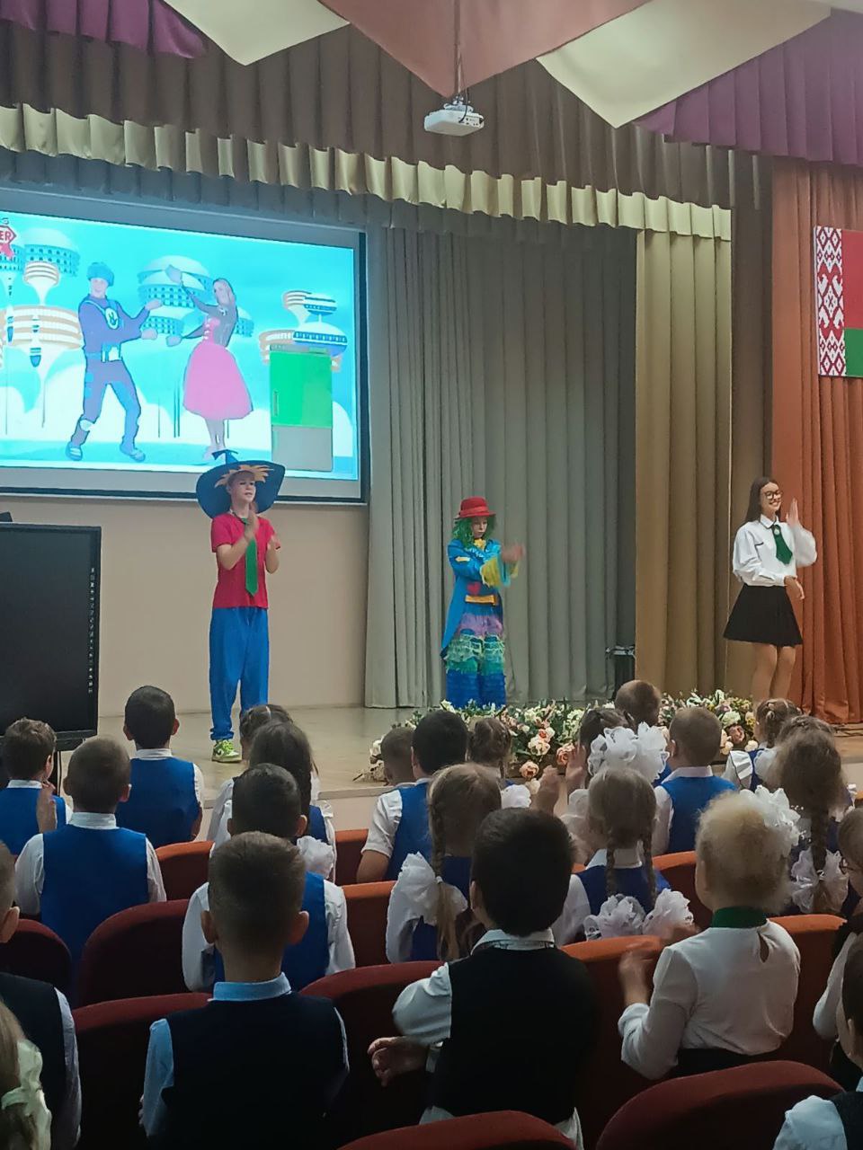 В зале собрались нарядные учащиеся 1 классов, учителя и родители. На празднике первоклассники читали стихотворения, пели песни, играли, выполняли задания сказочных героев.