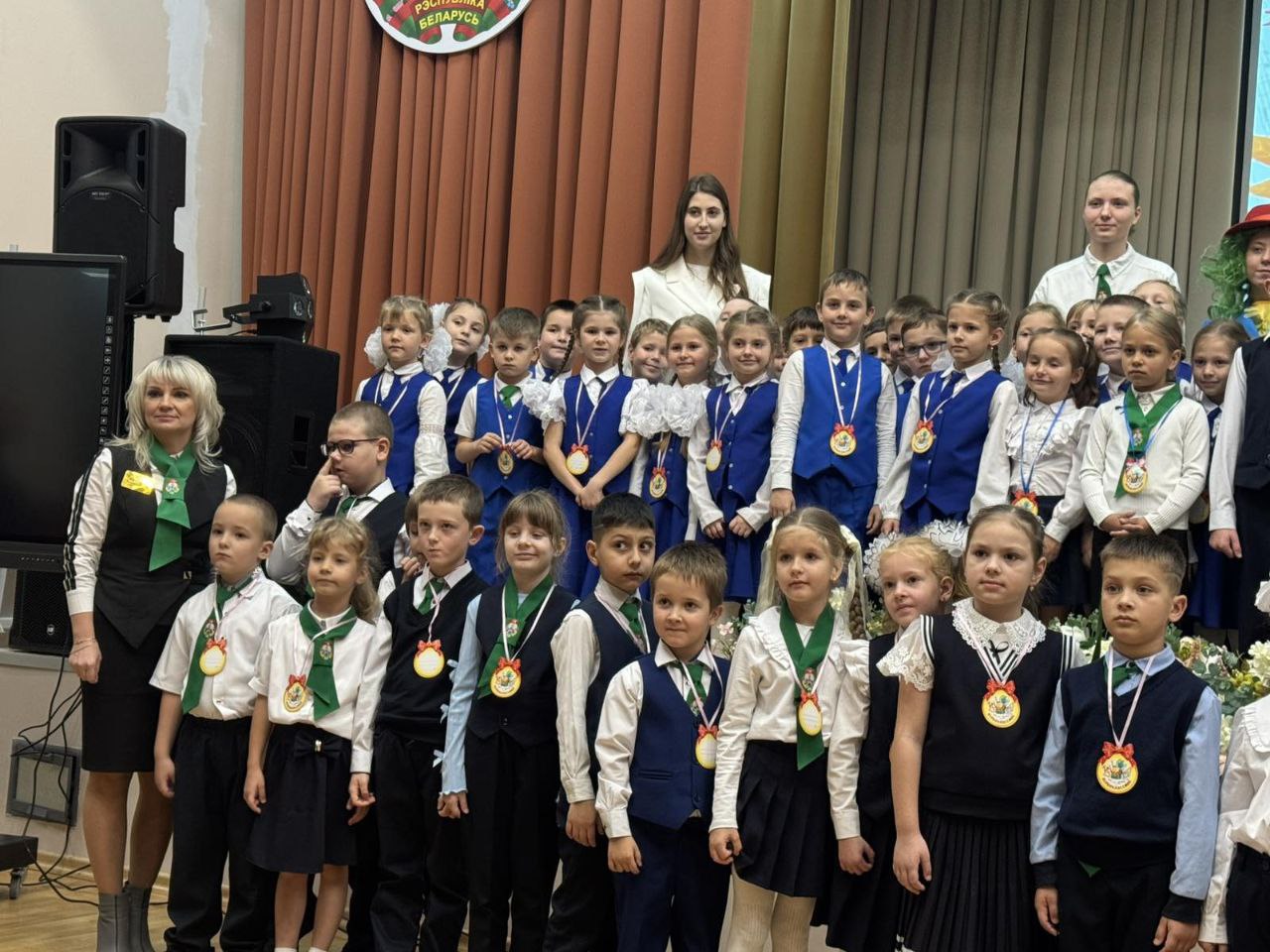 Все ребята произнесли клятву и получили символические медали. Теперь они с гордостью могут сказать: «Мы теперь не просто дети, мы теперь – учащиеся школы средней школы №75г.Гомеля».