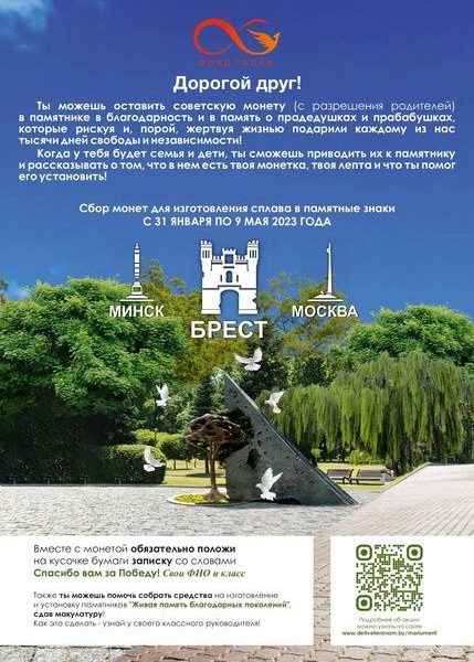 12.03.2025 в ГУО «Средняя школа 75 г.Гомеля»- Школы Мира стартовал масштабный проект А.Талая «Живая память благодарных поколений», в рамках которого уже открыты 2 из 3 скульптурных композиций в г.Минске и в Брестской крепости.