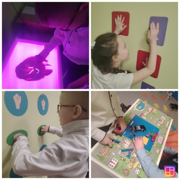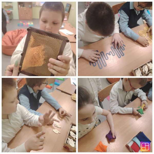 Сенсорное развитие: помощью специального планшета и сенсорных мешочков дети развивали мелкую моторику и тактильные ощущения.