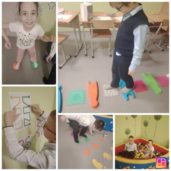 Работали над переключением движений пальцев, рук, ног. С помощью балансировочных подушек учились держать равновесие.