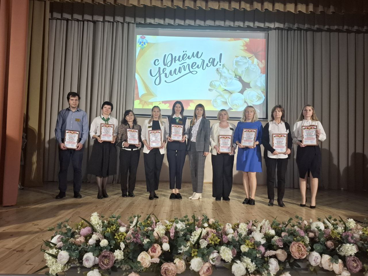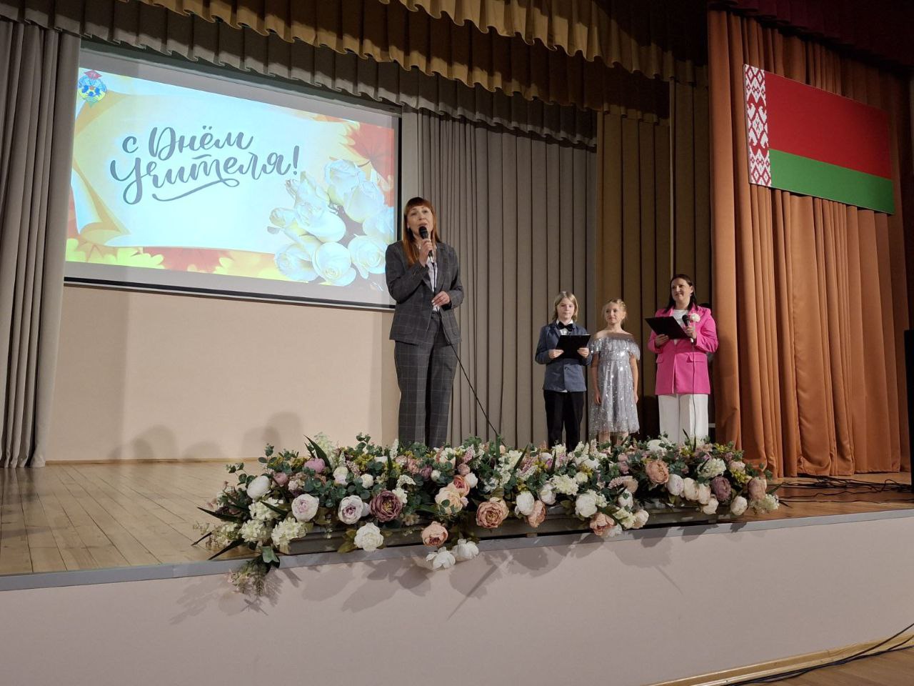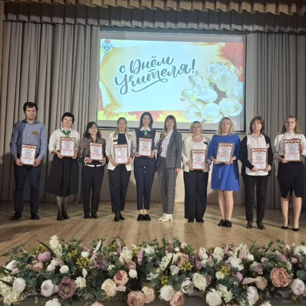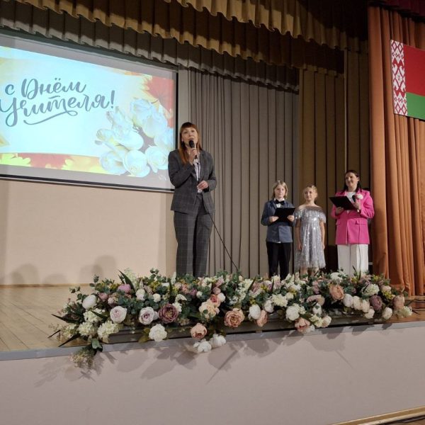 На праздничном концерте выступила с поздравлением Марина Владимировна и вручила педагогическим работникам Почётные грамоты отдела образования, спорта и туризма администрации Новобелицкого района г.Гомеля.