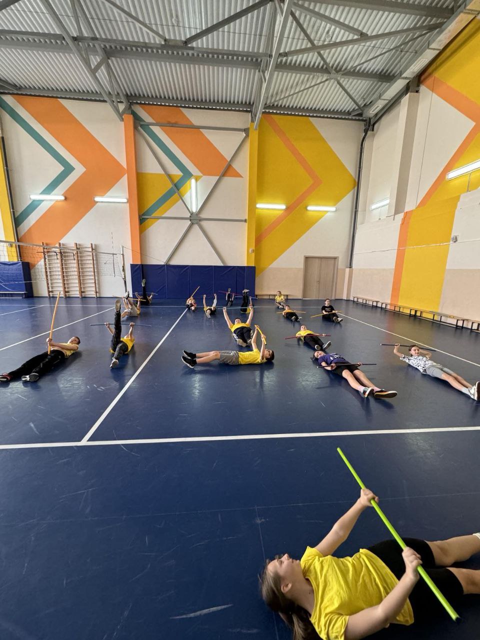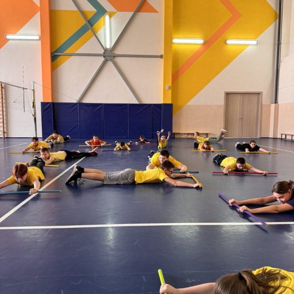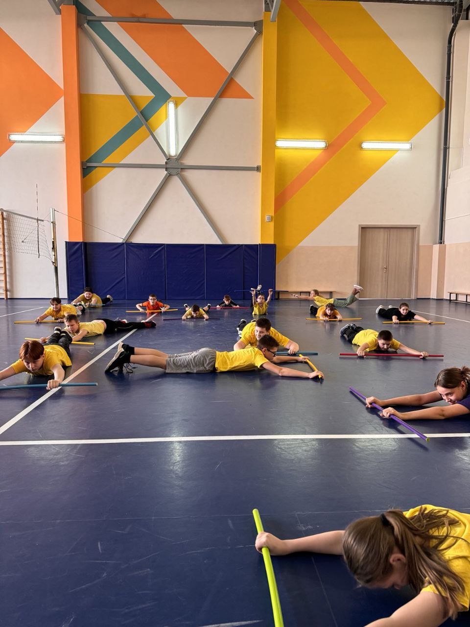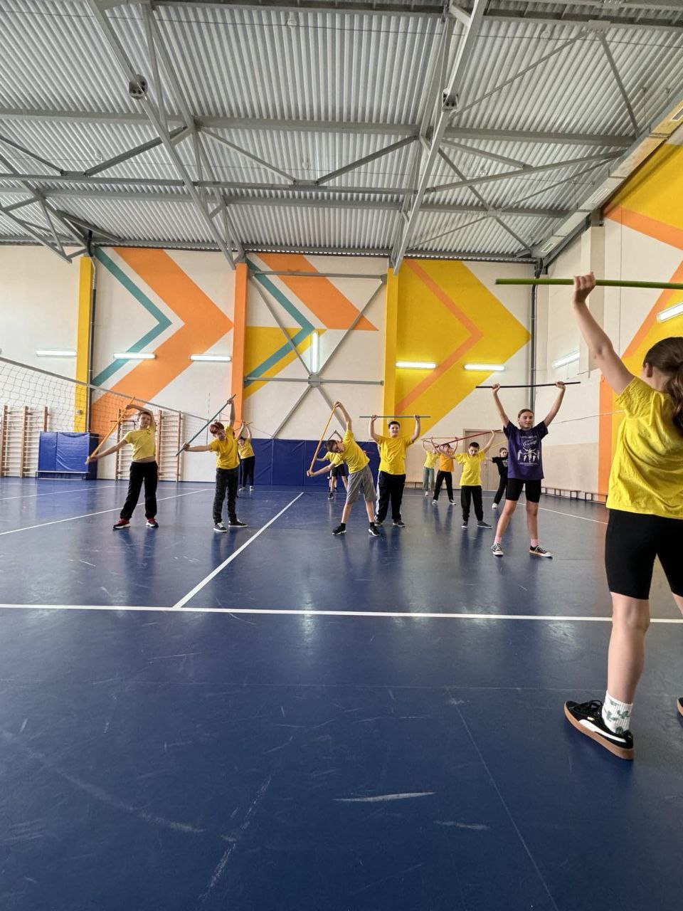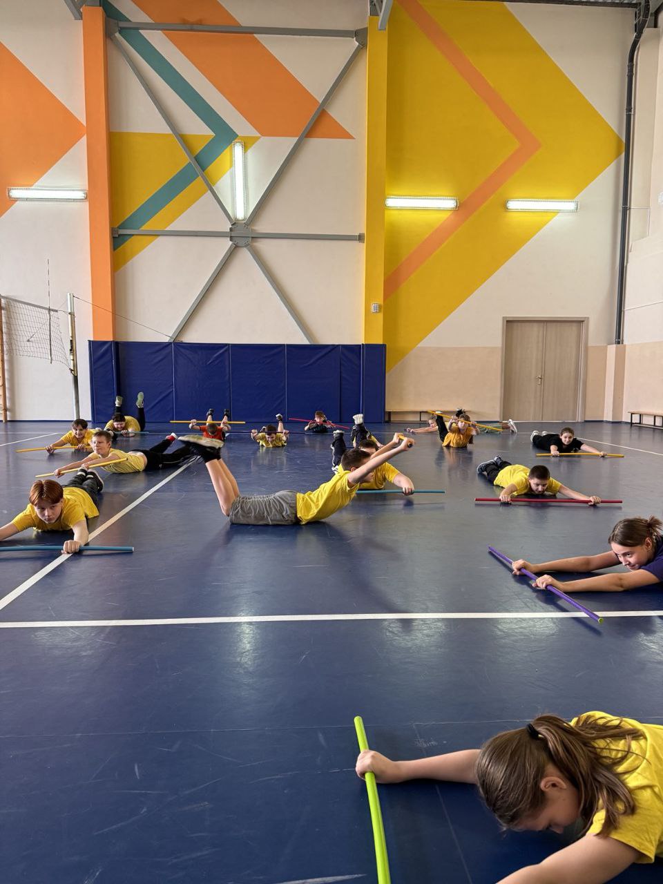 В спортивном зале с ребятами провели массовую разминку, командные соревнования и конечно же игры.