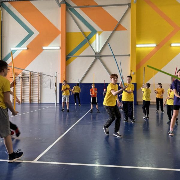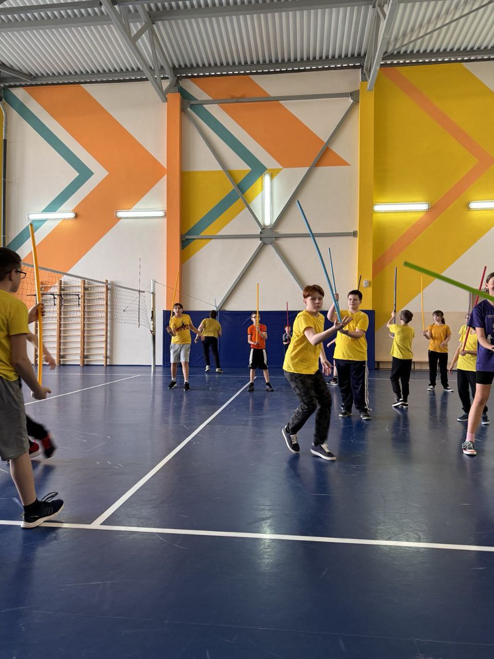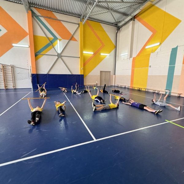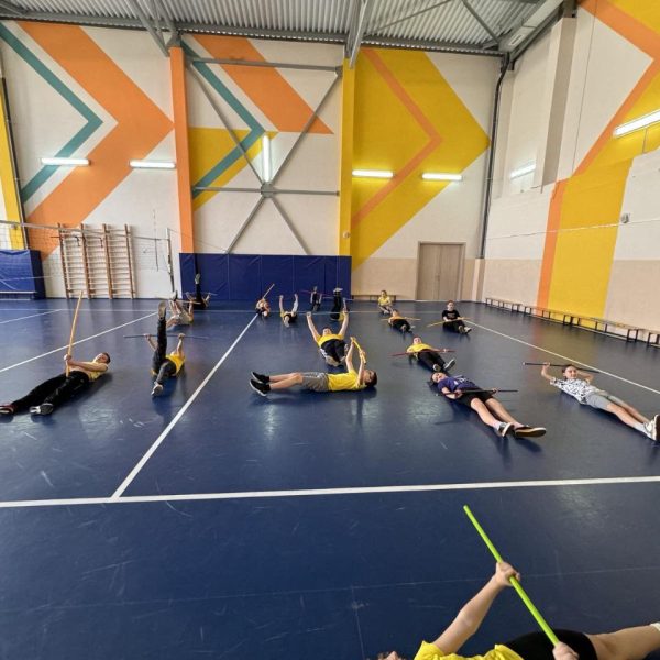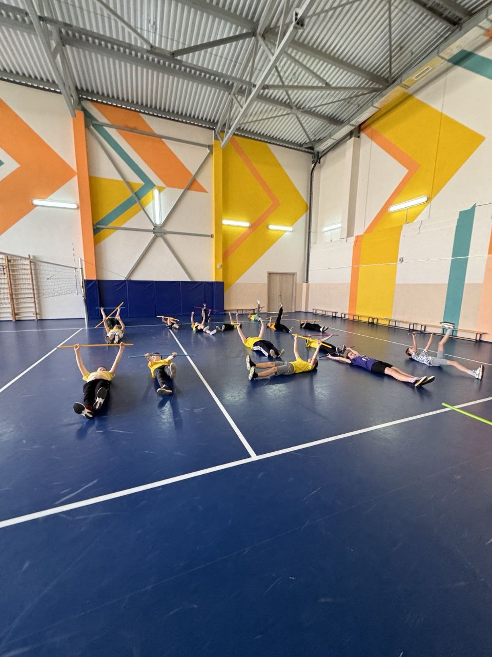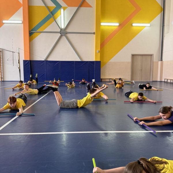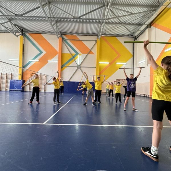 В спортивном зале с ребятами провели массовую разминку, командные соревнования и конечно же игры.