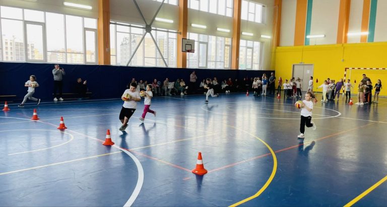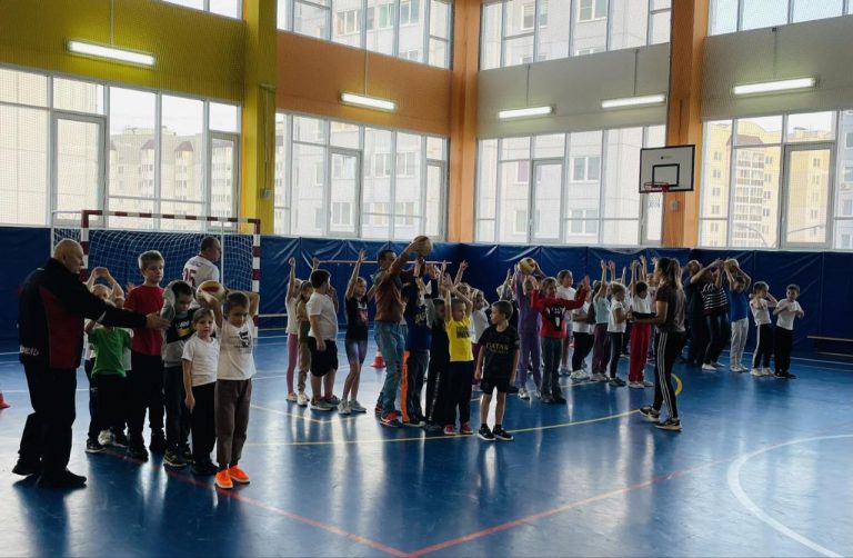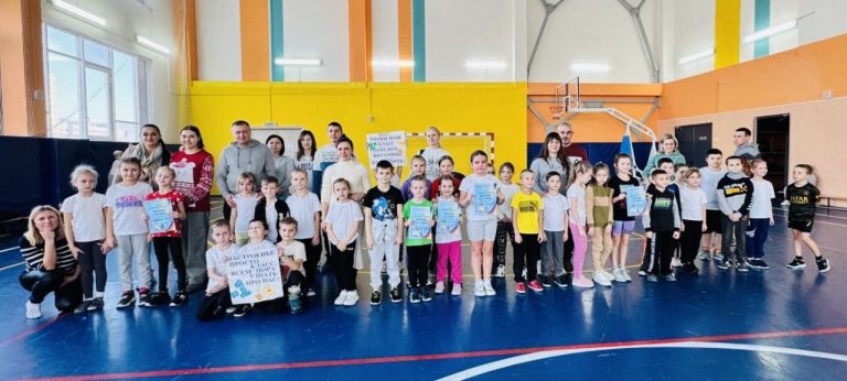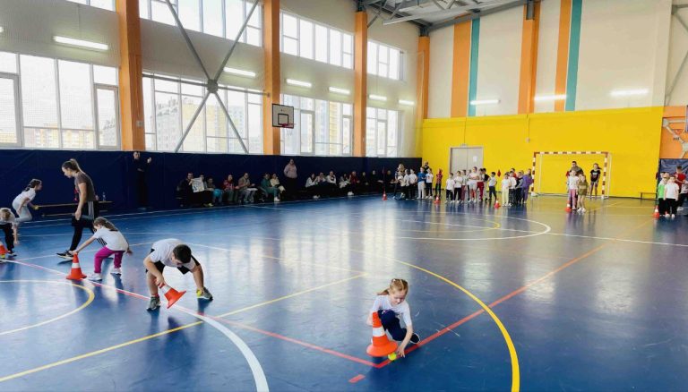 В спортивном зале с ребятами провели массовую разминку, командные соревнования и конечно же игры.