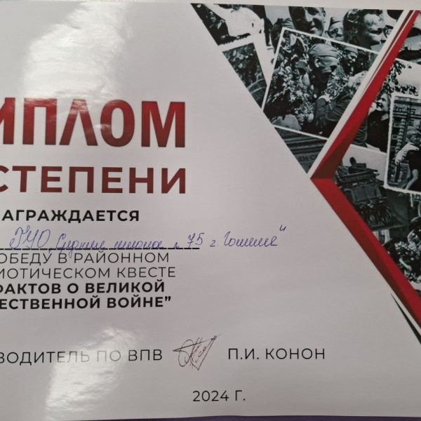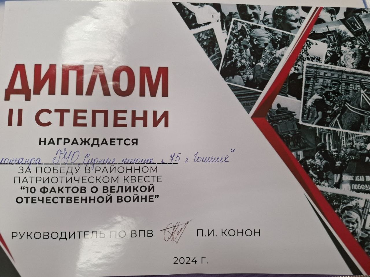 05.10.2024 учащиеся -миротворцы ГУО «Средняя школа №75 г. Гомеля» заняли 2 место в районном патриотическом квесте